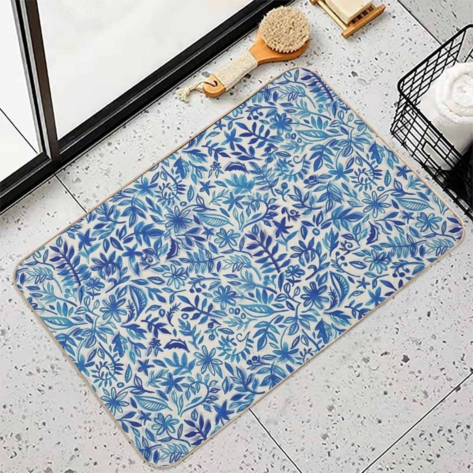 - Rapid-drying flannel soaks up water 3x faster than standard mats, preventing puddles in Floating Garden - A Watercolor Pattern in Blue bathrooms or poolside areas.