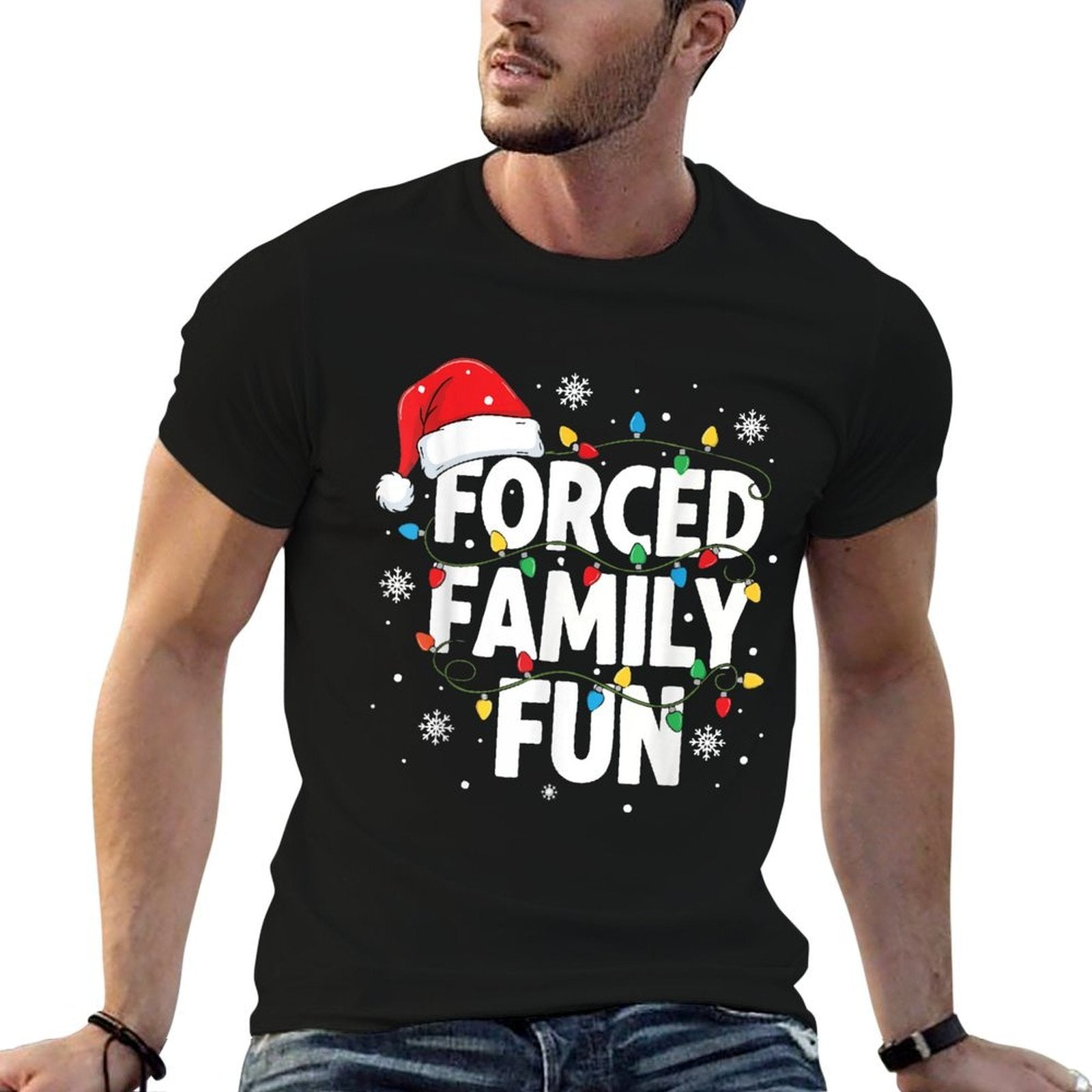 Forced Family Fun Men Women Kids Christmas Pajamas High-quality Stitching T-Shirt