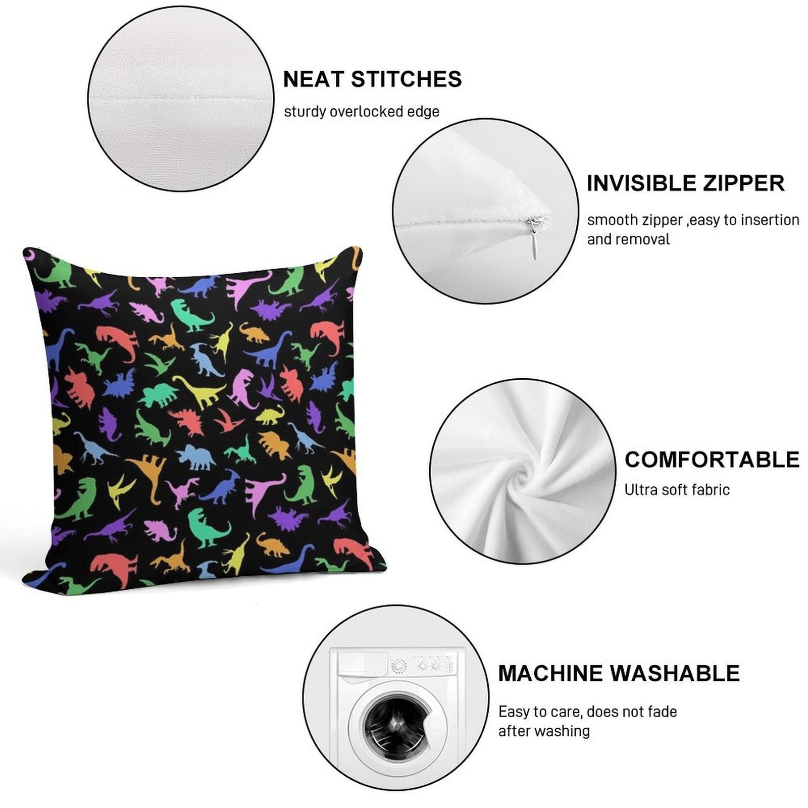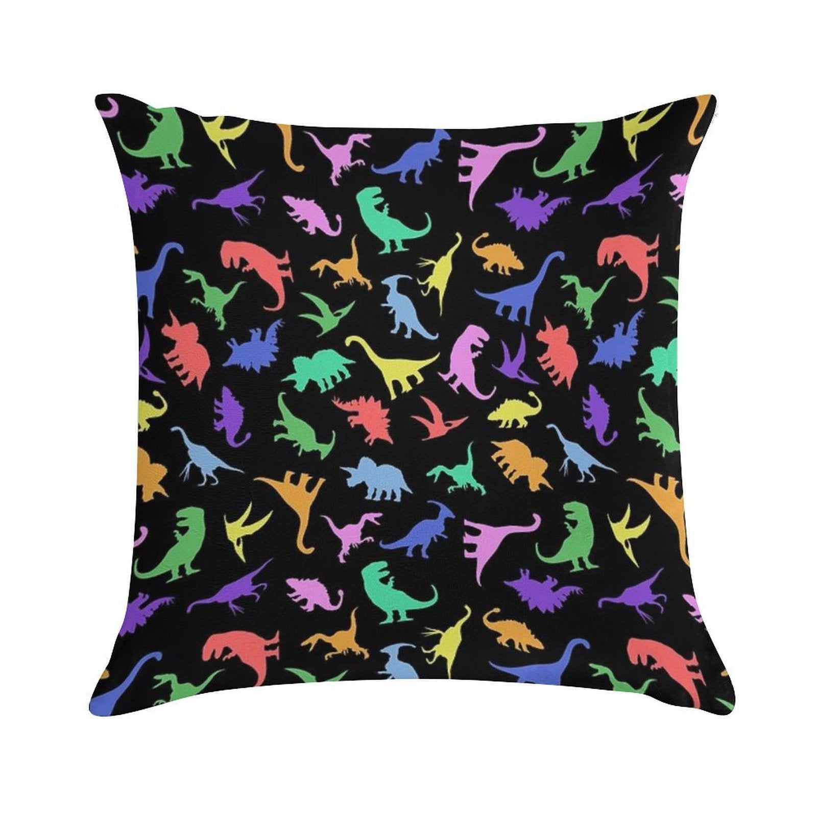 Fun Dinosaur Pattern (Black Background) Soft Durable Construction Throw Pillow
