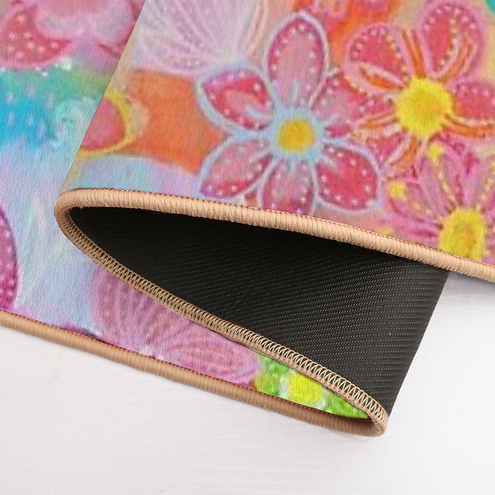 - Non-slip rubber backing grips floors securely, ideal for Funky Flowers Print Mat placements on tiles, wood, or marble.