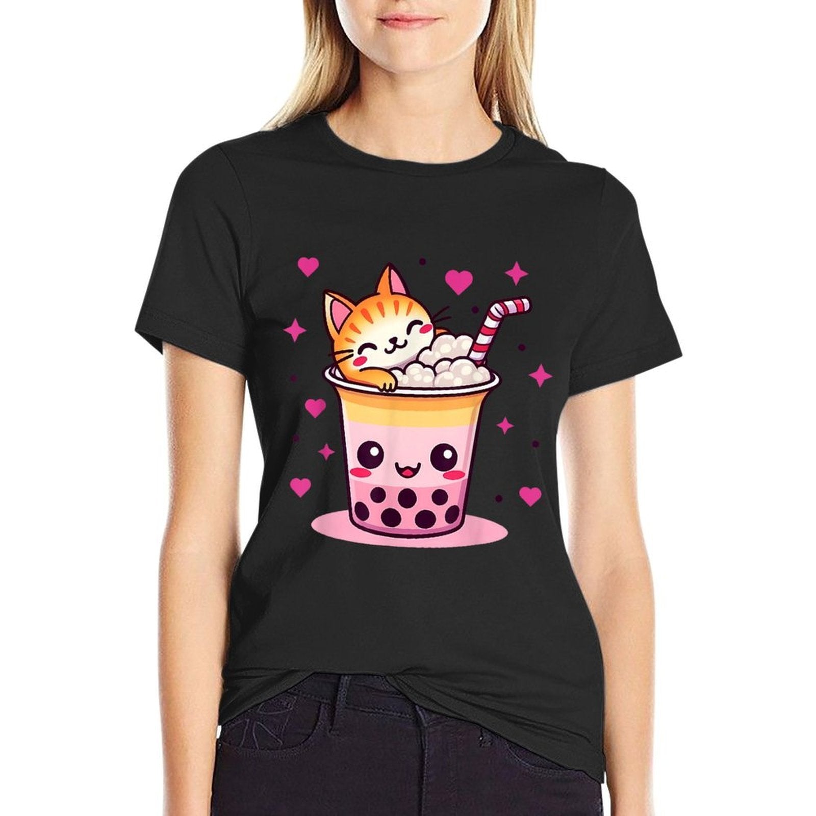 - Heat-transfer prints retain vibrant colors wash after wash, perfect for Funny Cat Boba Tea Cute Cat Anime With Bubble Tea Lover casual outfits or statement streetwear.