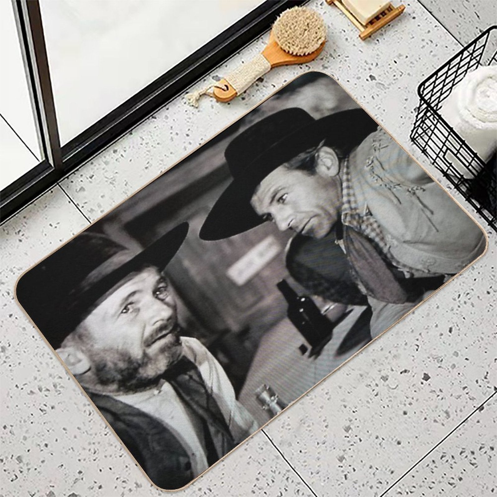 - Non-slip rubber backing grips floors securely, ideal for Gary Cooper And Walter Brennan in The Westerner Mat placements on tiles, wood, or marble.