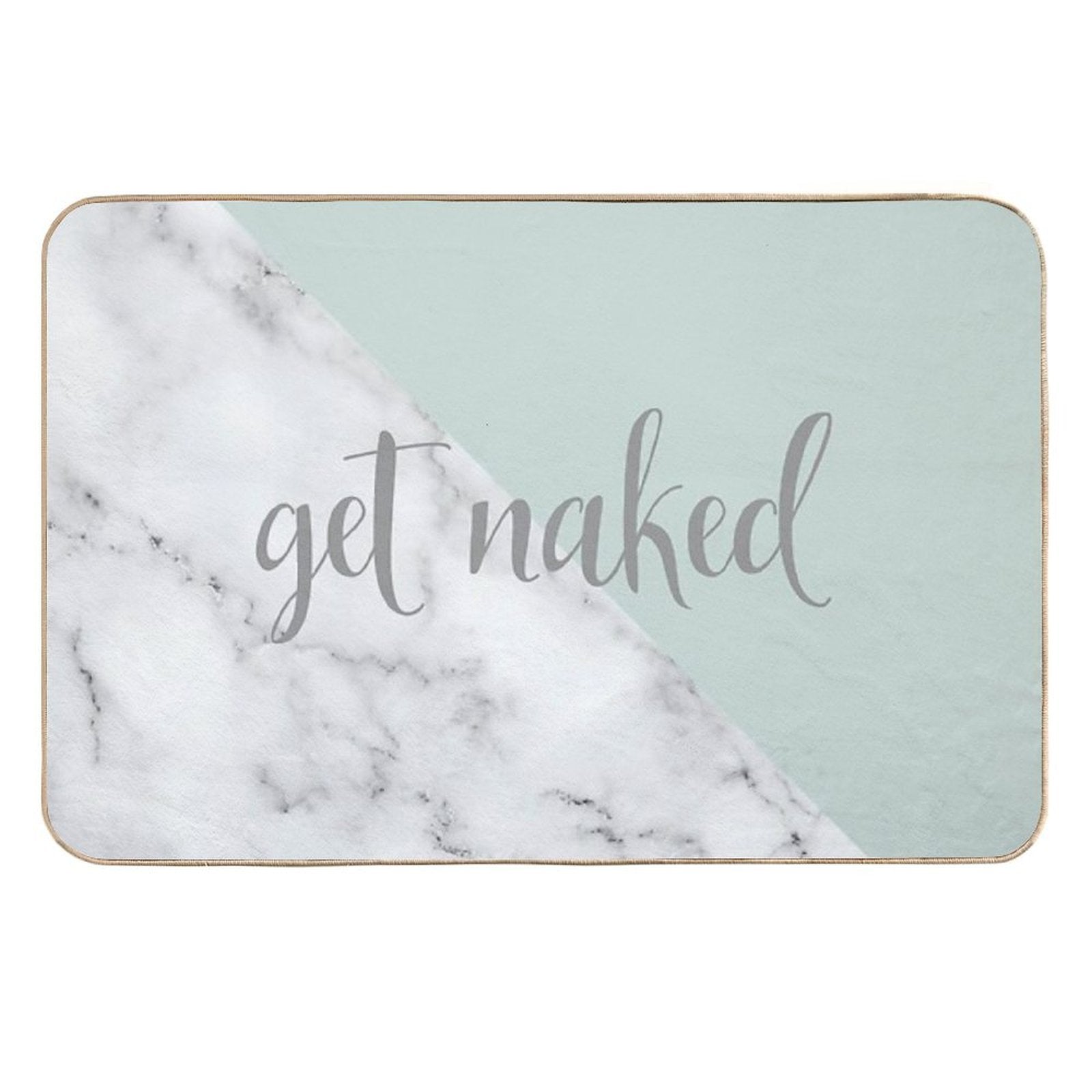 - Use as a vanity rug, guest suite accent, or mudroom defender – the Get Naked Bathroom And Bedroom Quote, Mint Green, White, Marble Mat adapts to any space.
