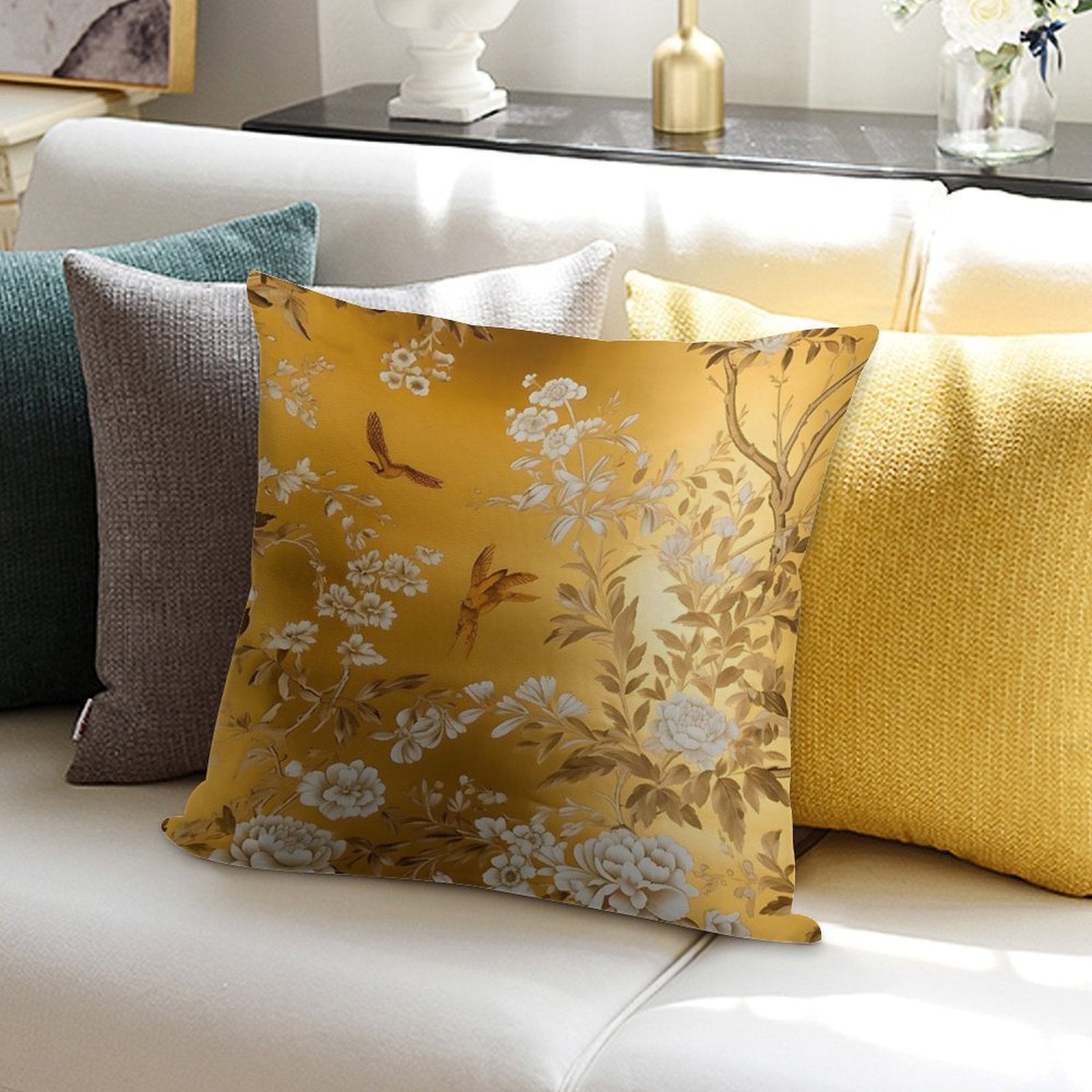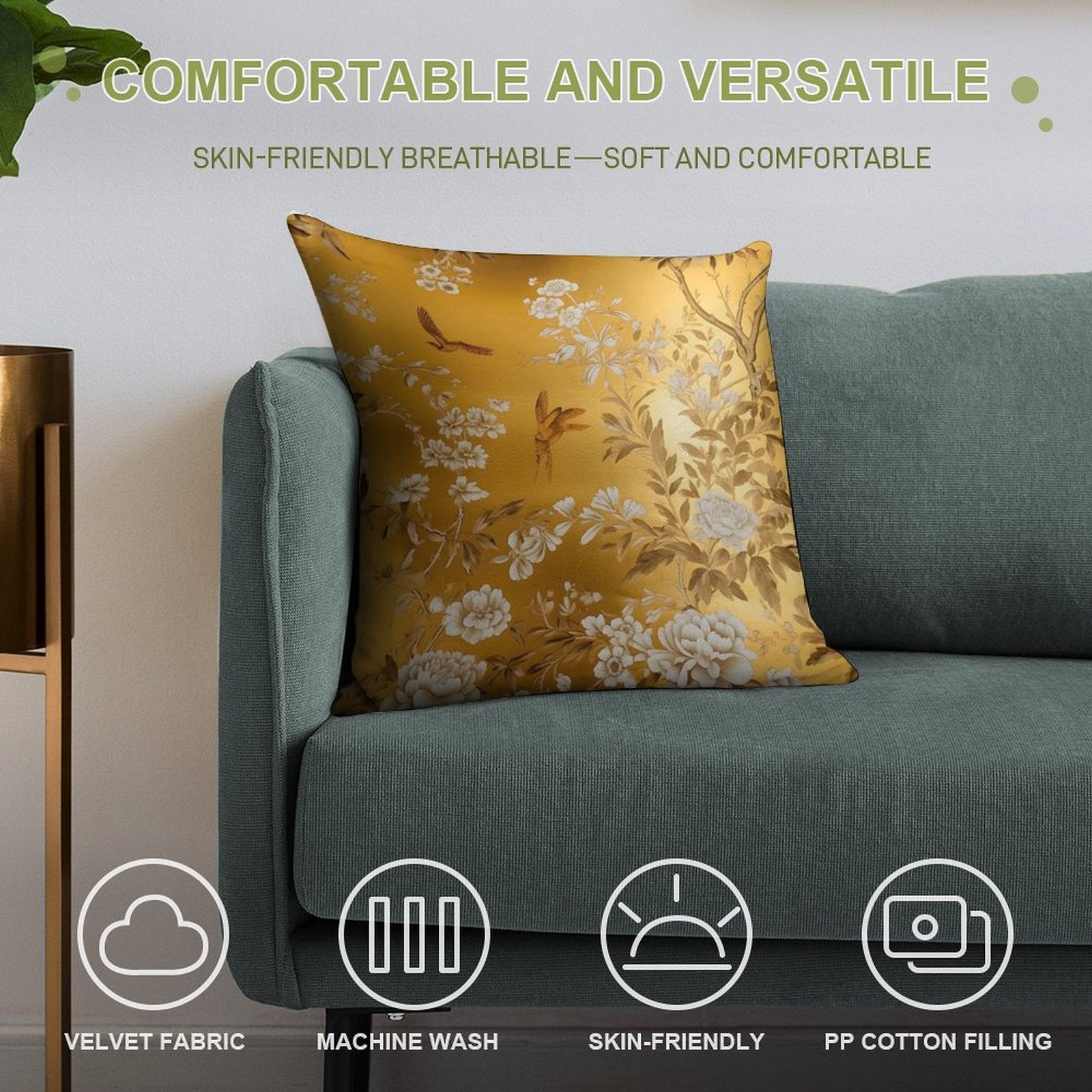 Gold Chinoiserie Floral Soft Durable Construction Throw Pillow