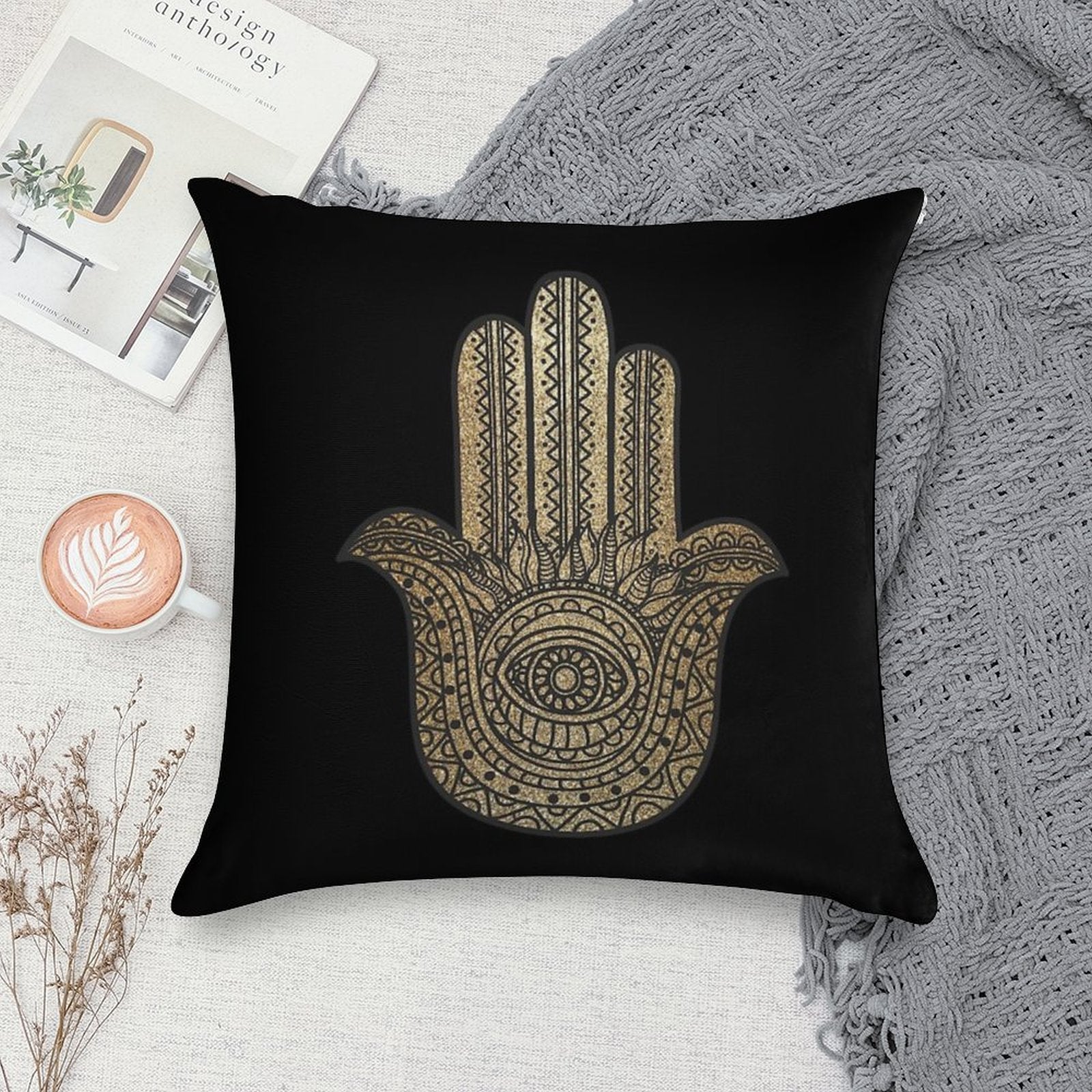 Golden Hamsa Hand Soft Hidden Zipper Throw Pillow