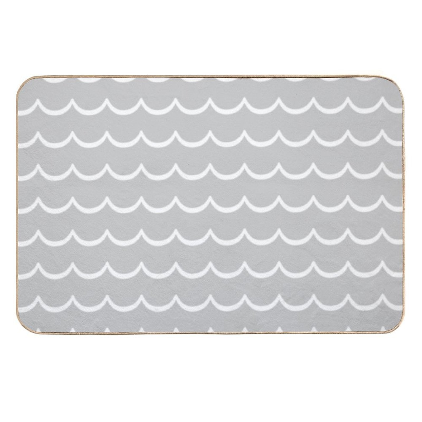 - Non-slip rubber backing grips floors securely, ideal for Gray And White Coastal Wave Pattern Mat placements on tiles, wood, or marble.