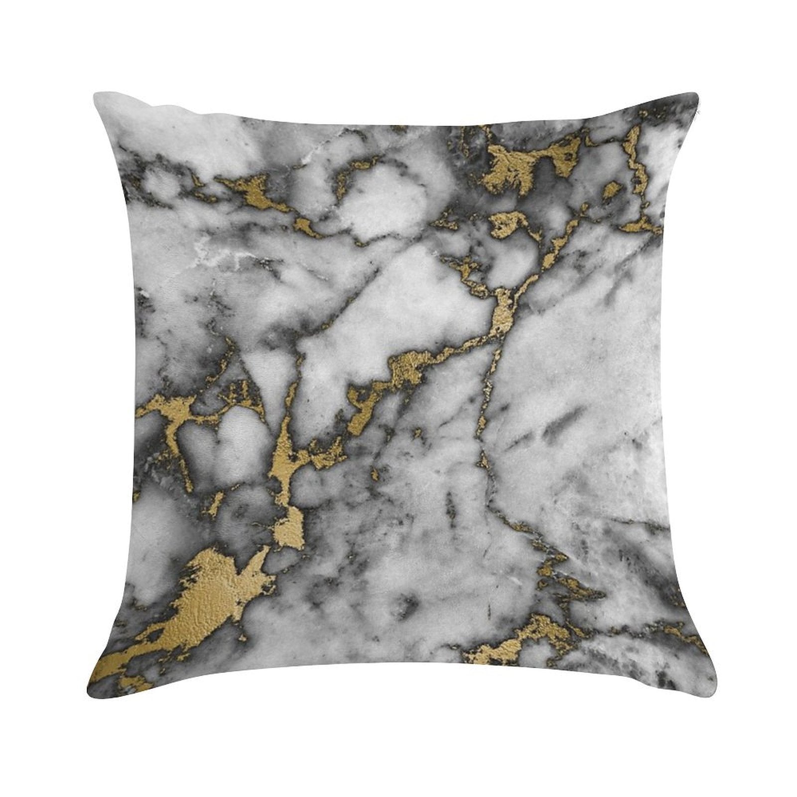 Grey Marble Gold Streaks Phone Case Cover Soft Gift Ready Throw Pillow