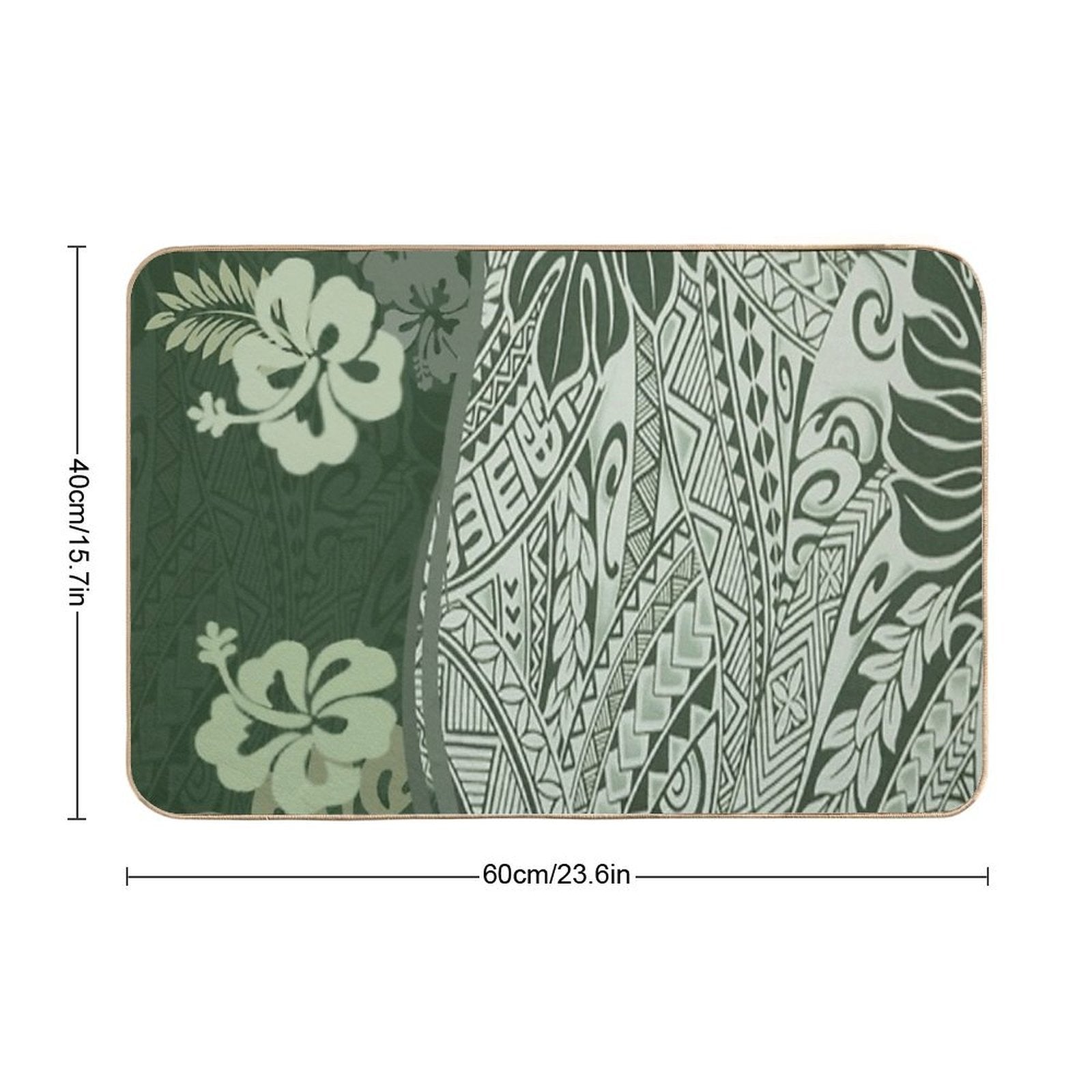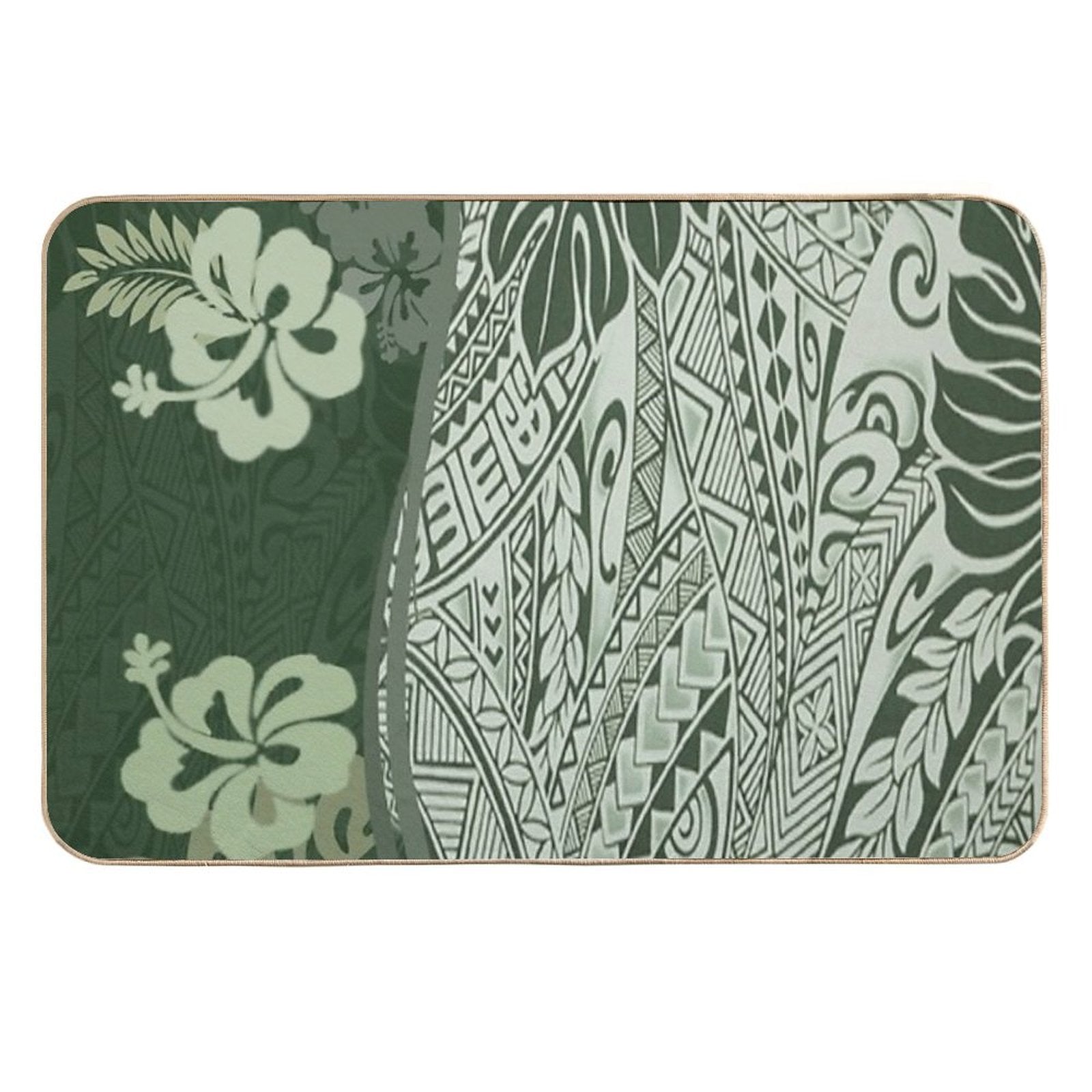 Hawaiian Green Tropical Tapa Print Long-Lasting Bath Mat
