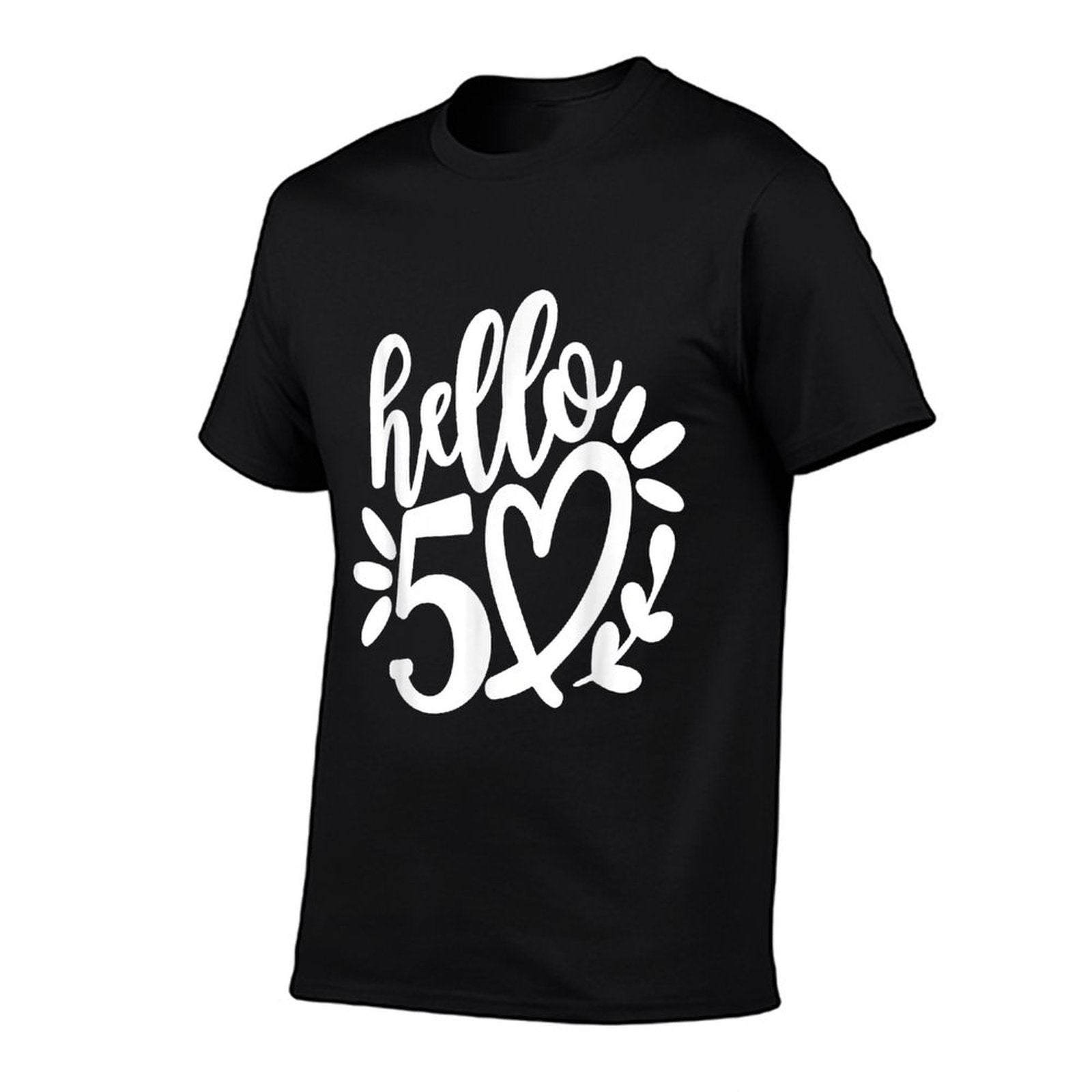Hello 50 with Cute Heart, Hello Fifty Squad, 50th Birthday Trendy Pattern T-Shirt