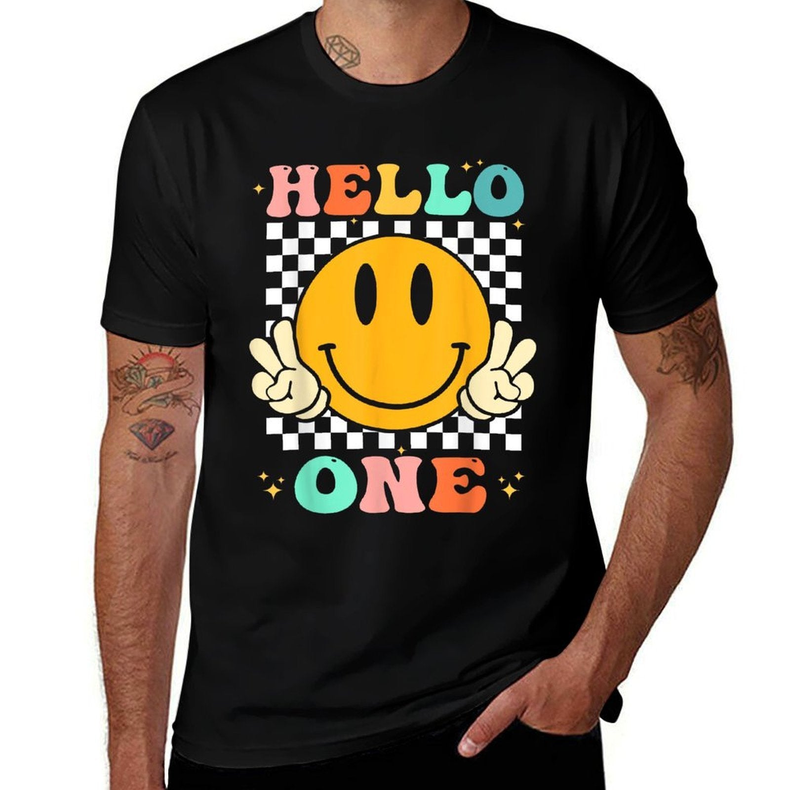- Heat-transfer prints retain vibrant colors wash after wash, perfect for Hello One 1 Year Old 1st Birthday for Girl Age 1 Groovy casual outfits or statement streetwear.