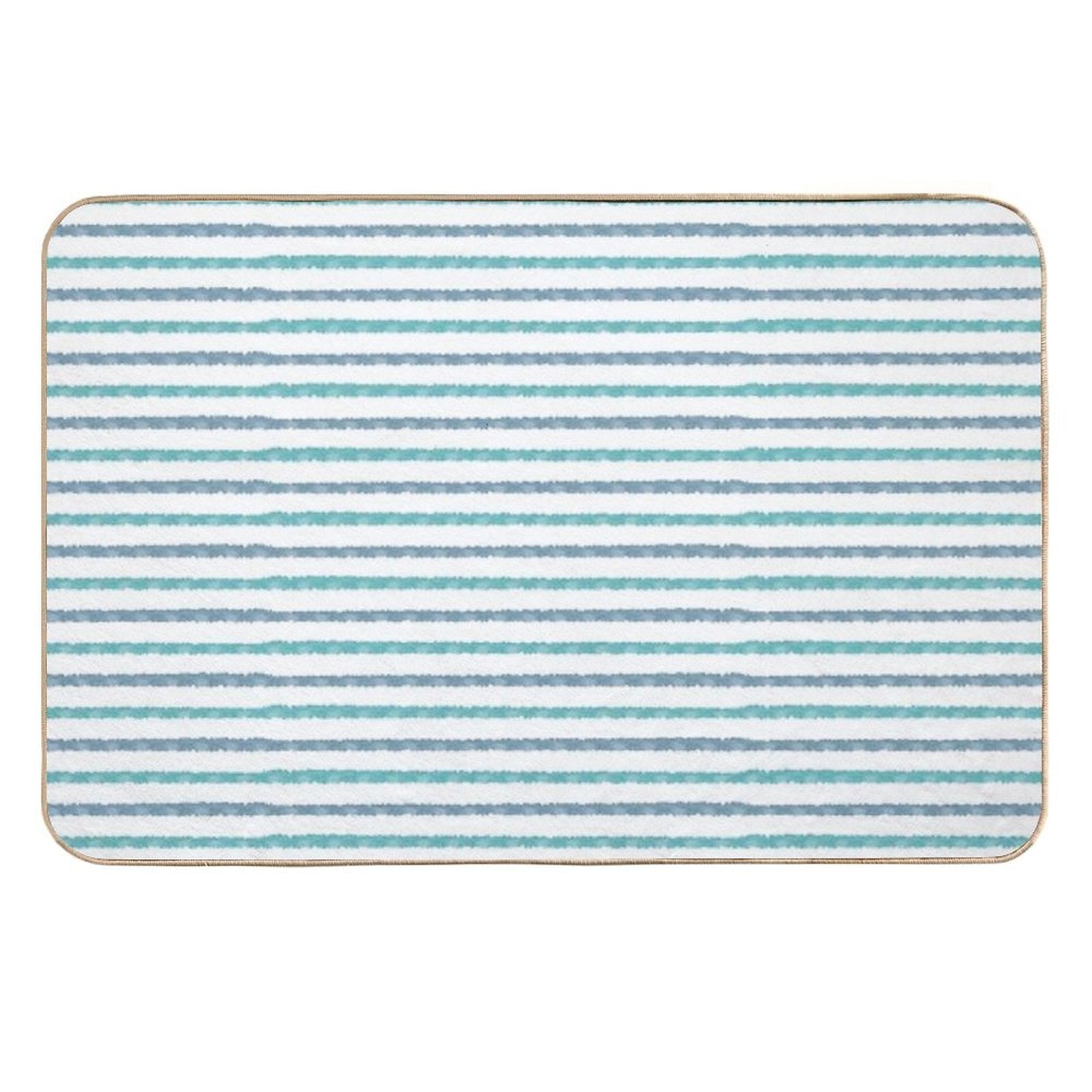 - Non-slip rubber backing grips floors securely, ideal for Horizontal Watercolor Stripes Blue And Turquoise On White Mat placements on tiles, wood, or marble.