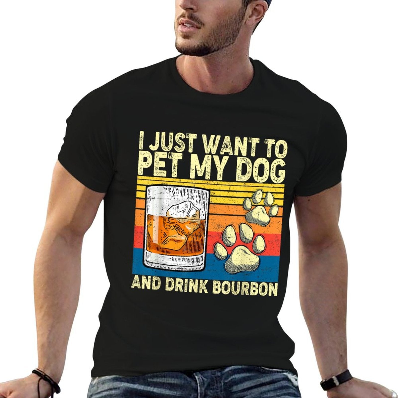 - Heat-transfer prints retain vibrant colors wash after wash, perfect for I Just Want To Pet My Dog And Drink Bourbon Animals Lover casual outfits or statement streetwear.