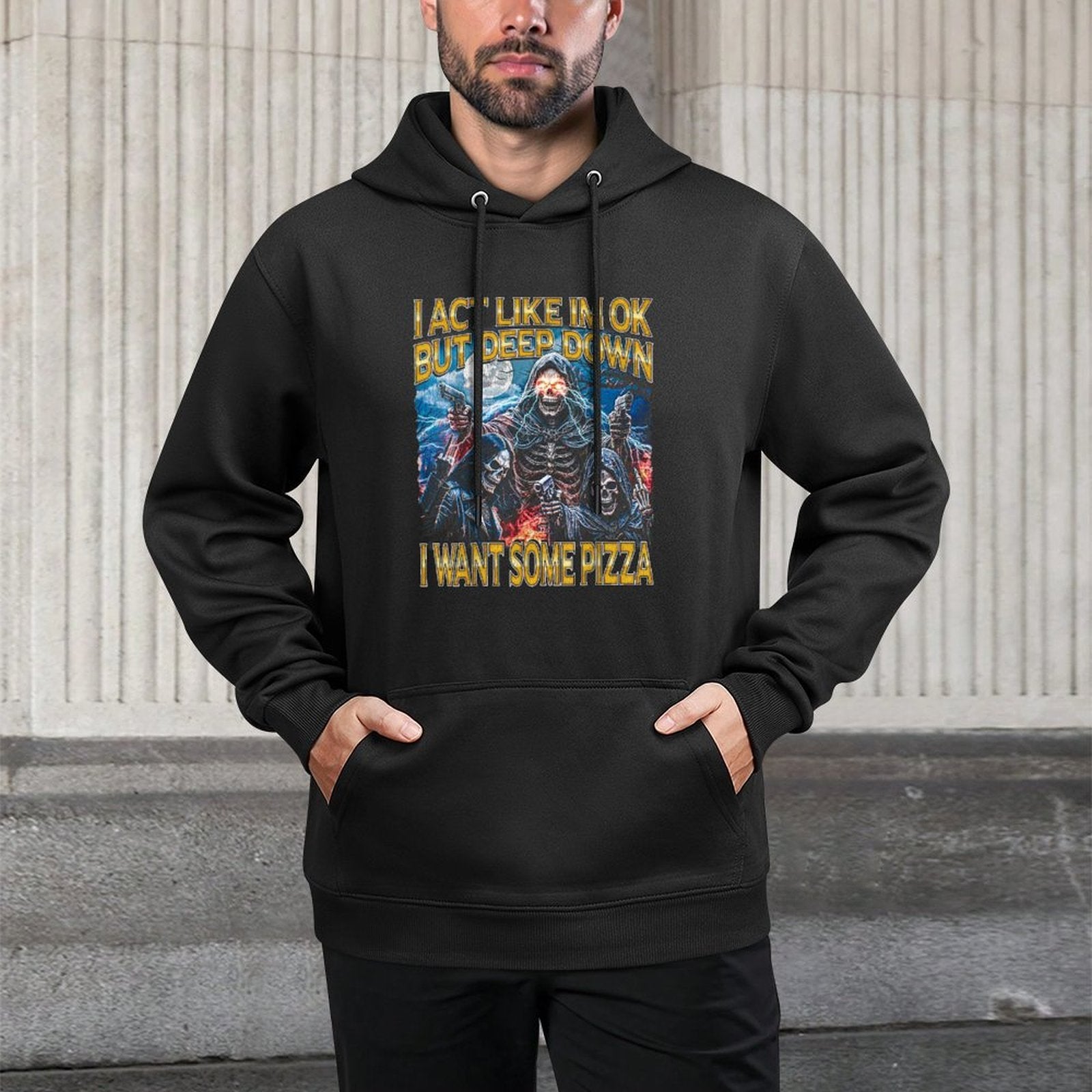I Want Some Pizza - Horror Bootleg Cool Hard Skeleton Meme Medium-Weight Fabric Hoodie