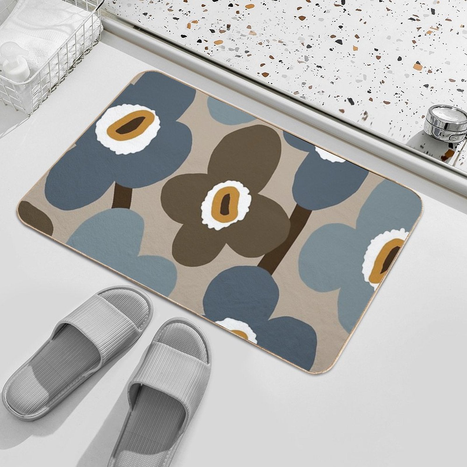 Iconic Retro Scandinavian Flowers in Blue And Brown Versatile Bath Mat