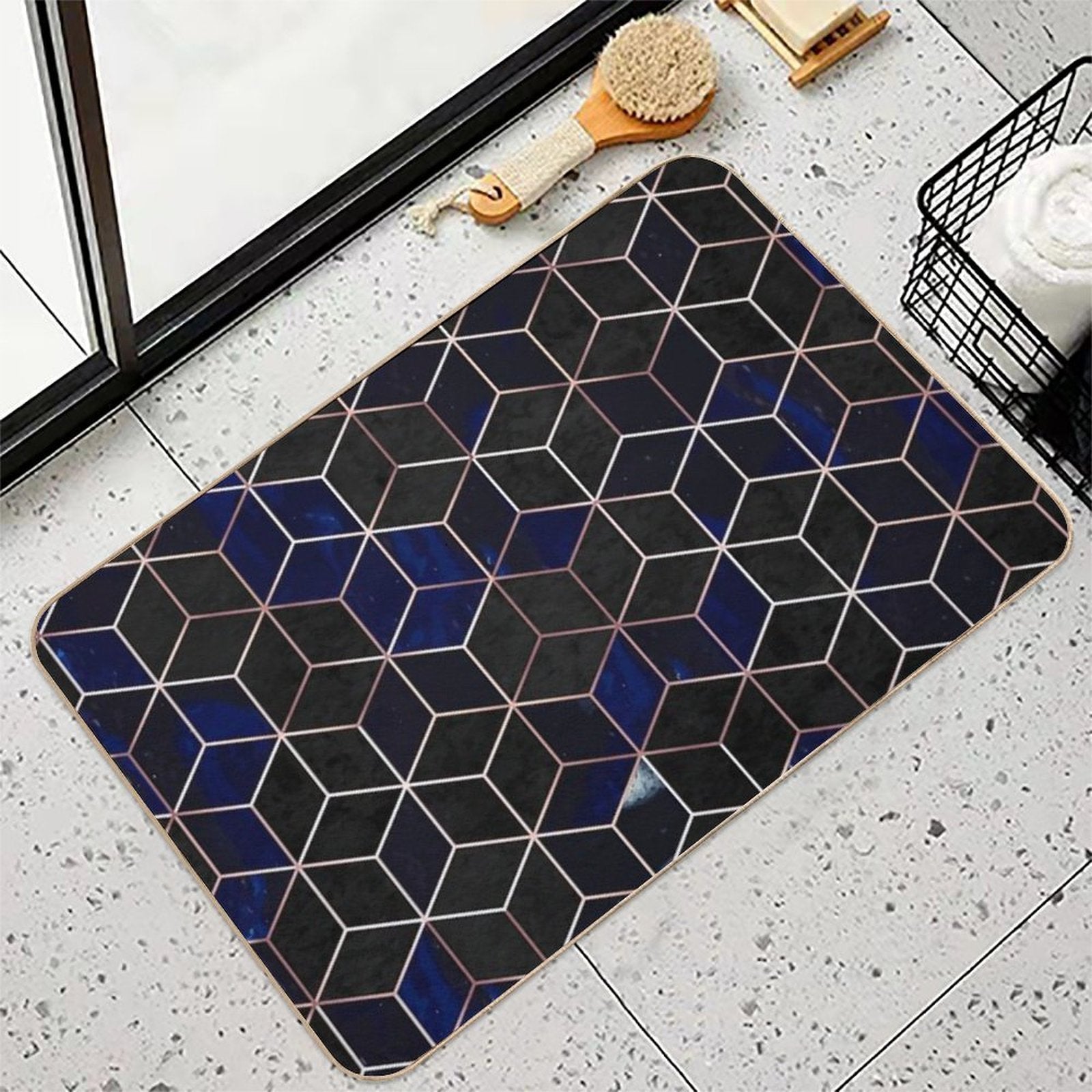 Indigo Hexagons Geometric Pattern Easy Maintenance Bath Mat