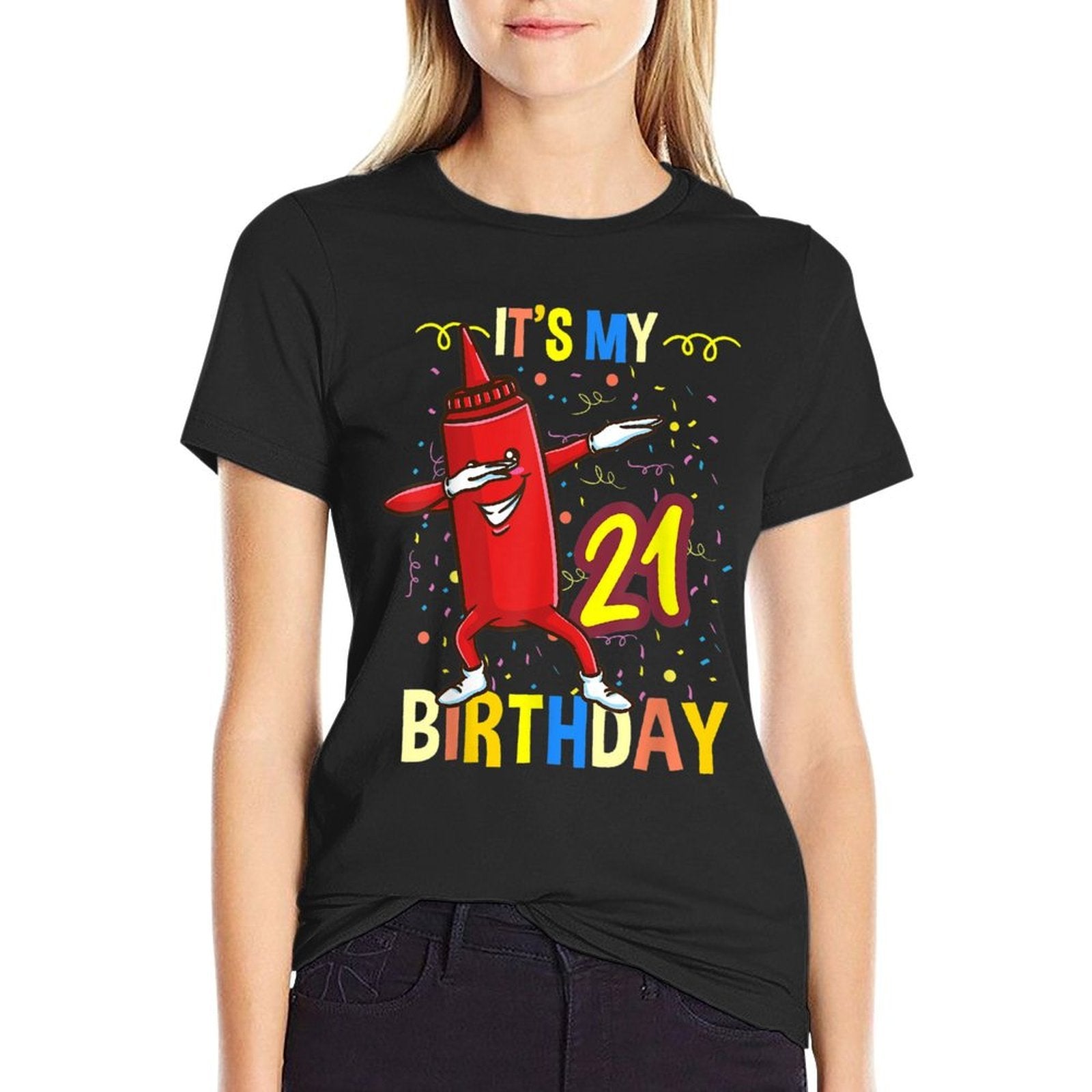 - Avoid bleach to preserve the Its My 21st Birthday Dabbing Ketchup T-shirt’s bold graphics and cotton integrity.