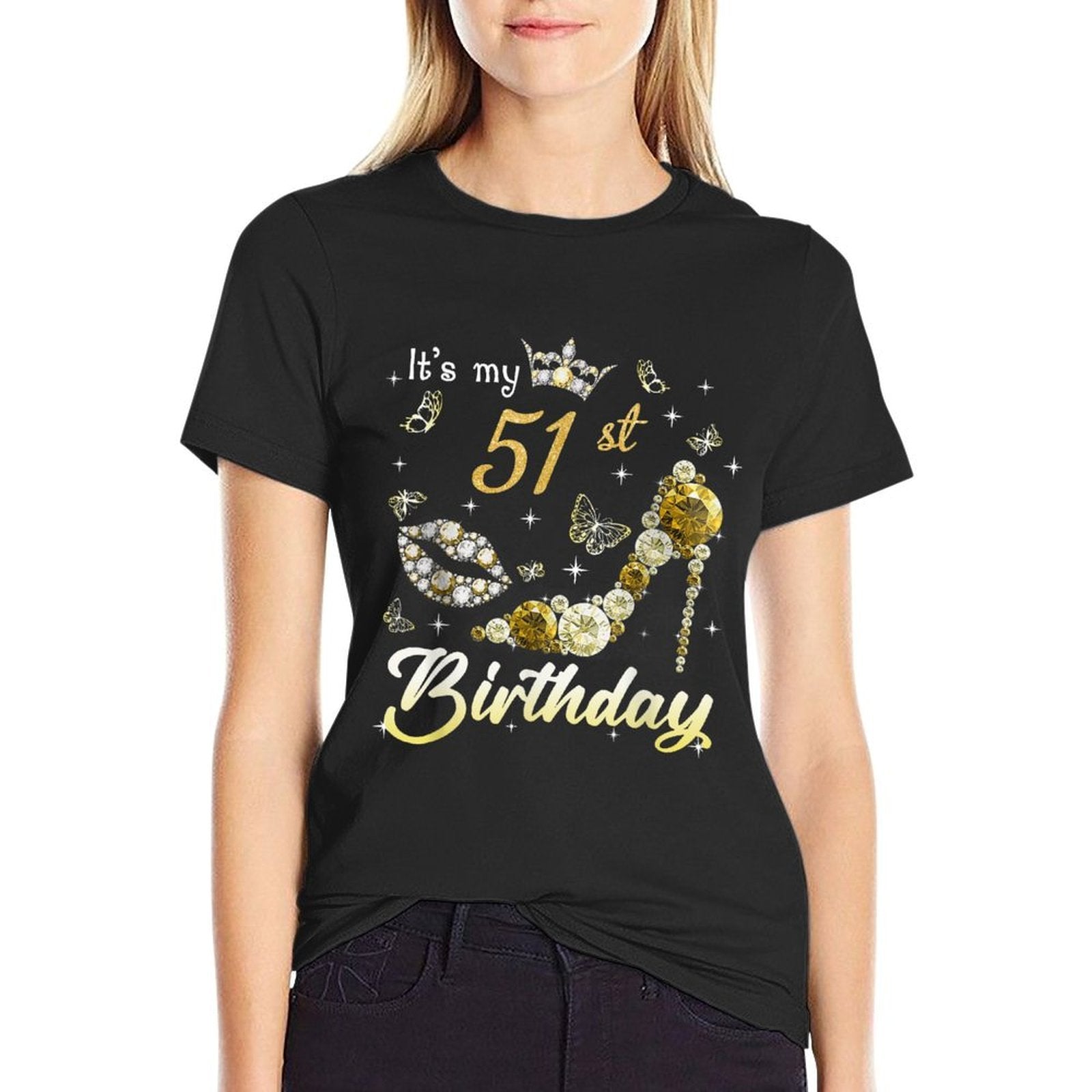Claim Your It's My 51st Birthday Queen 51 Year Old Crown Gold High Heel T-Shirt Today – [Shop Now] and Own Summer!