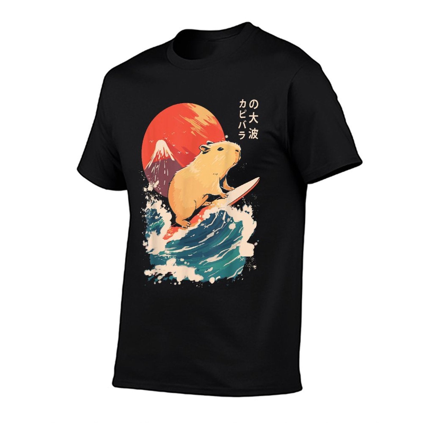 - Avoid bleach to preserve the Japanese Capybara Surfing Wave Great Wave Japan T-shirt’s bold graphics and cotton integrity.