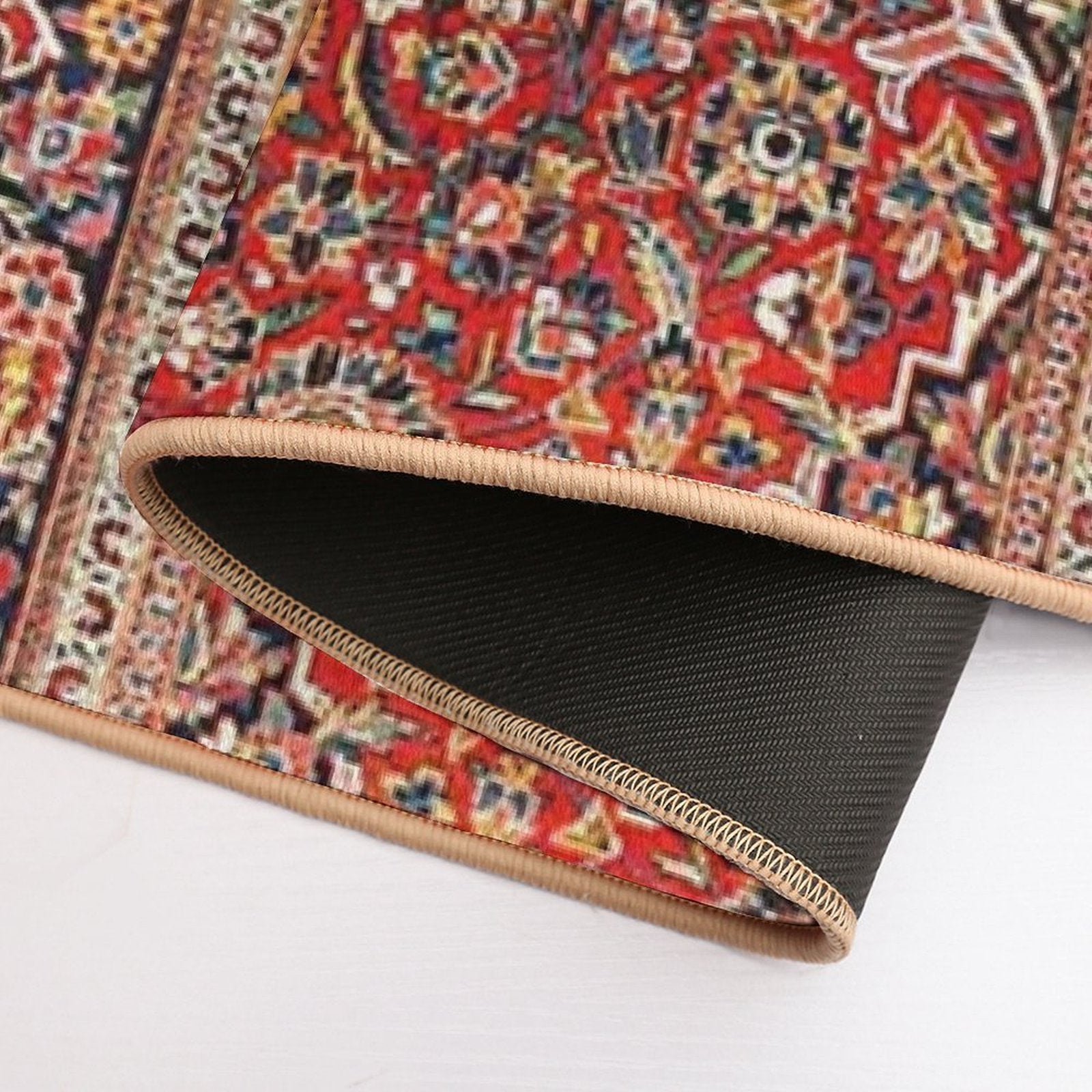 - Non-slip rubber backing grips floors securely, ideal for Kashan Antique Central Persian Rug Print Mat placements on tiles, wood, or marble.