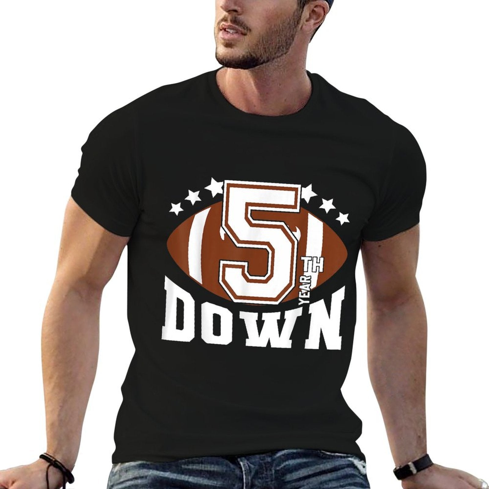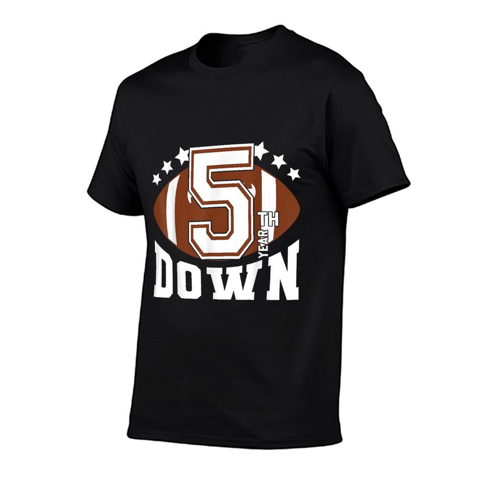 - Avoid bleach to preserve the Kids 5th Year Down Football Birthday Boy Party 5 Year Old T-shirt’s bold graphics and cotton integrity.