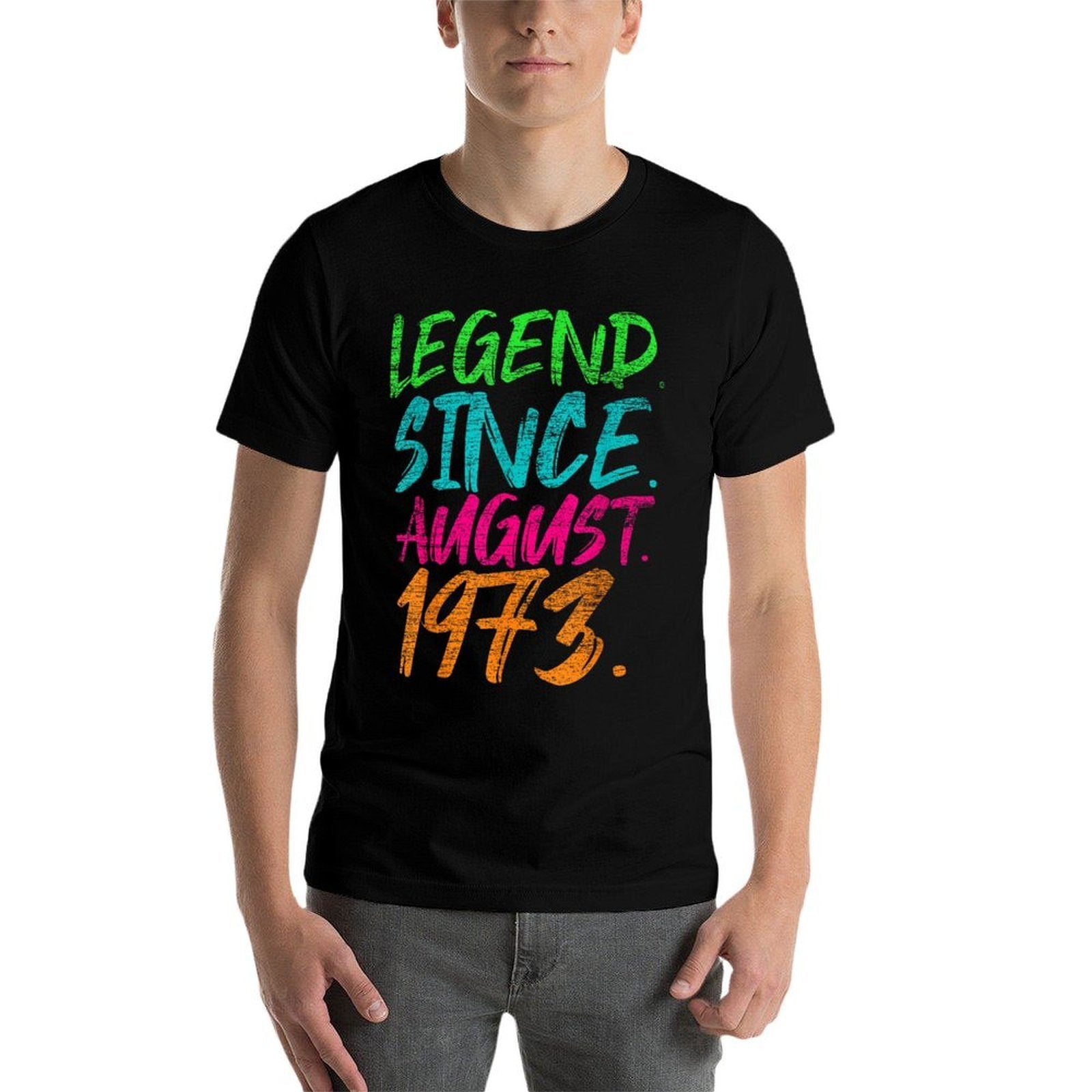 Legend Since August 1973 Men Women Bday Gifts 50th Birthday Fade-proof Color T-Shirt