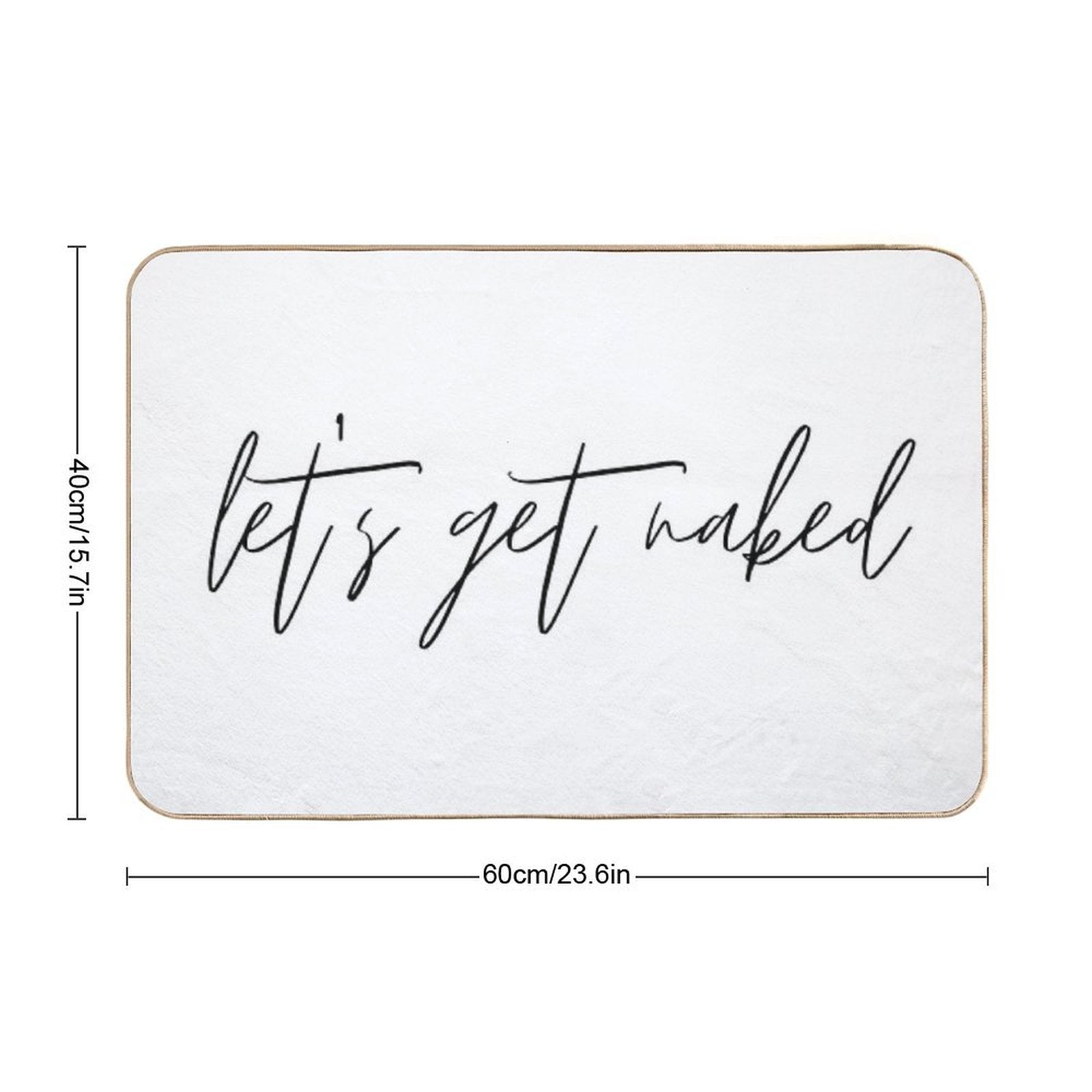 - Use as a vanity rug, guest suite accent, or mudroom defender – the Let's Get Naked Funny Quote Text Black & White Mat adapts to any space.