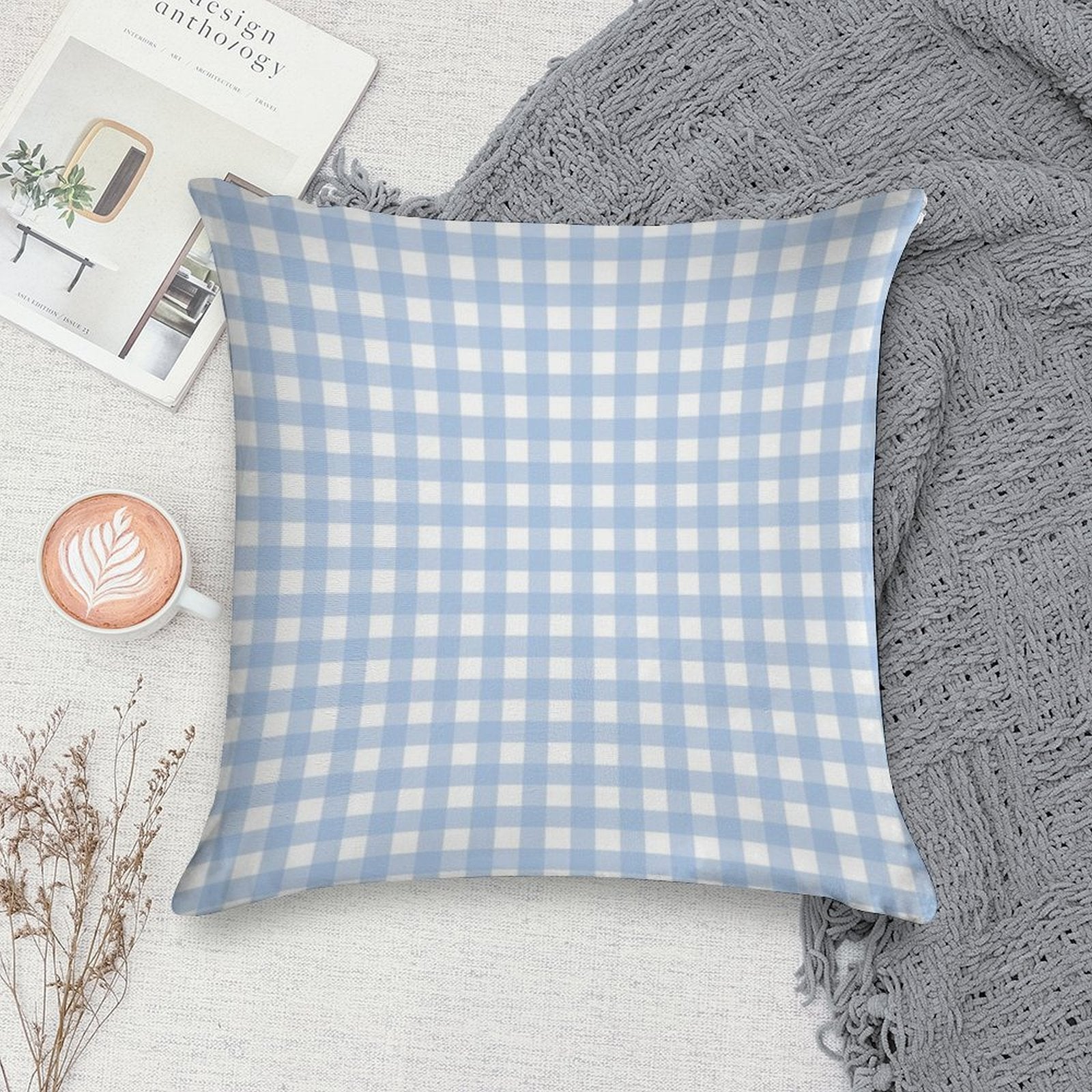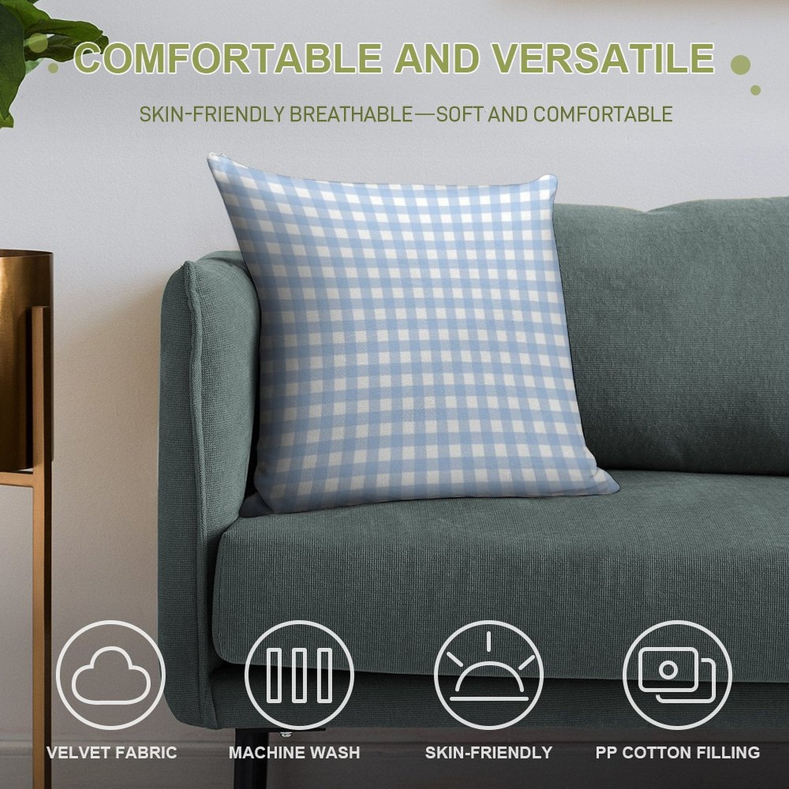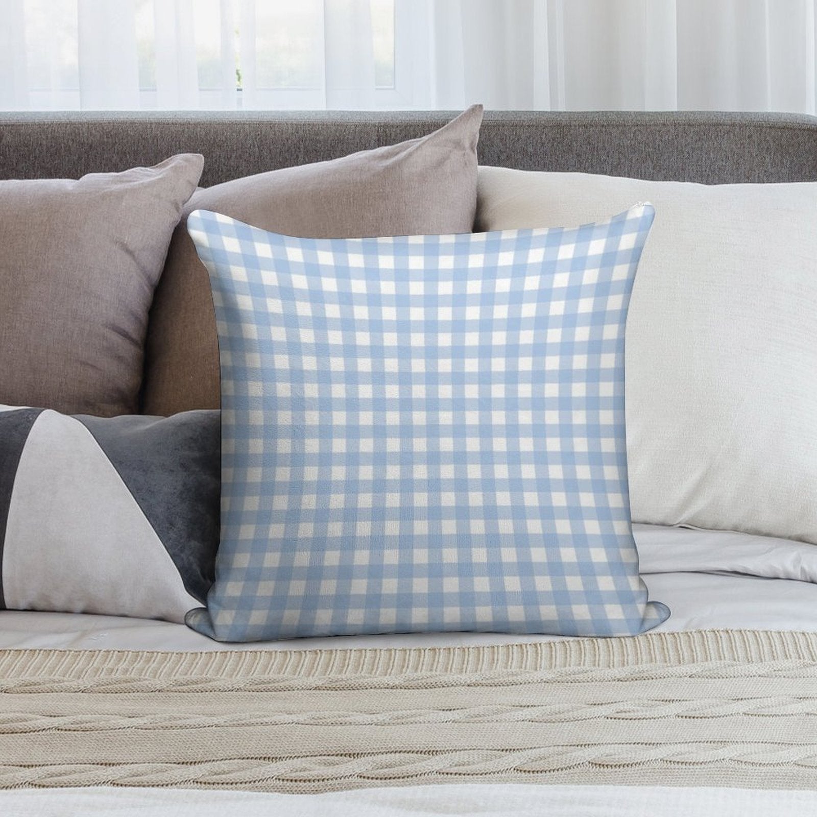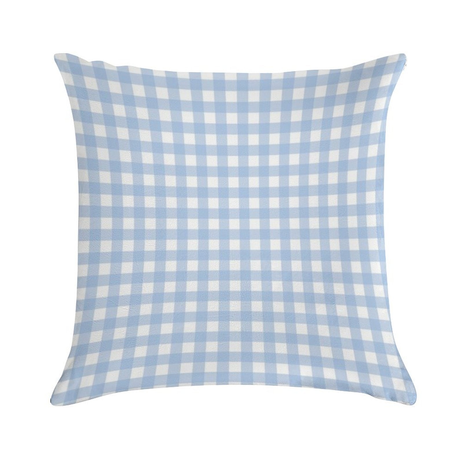 Light Blue Gingham Patterned Soft Warmth Comfort Throw Pillow
