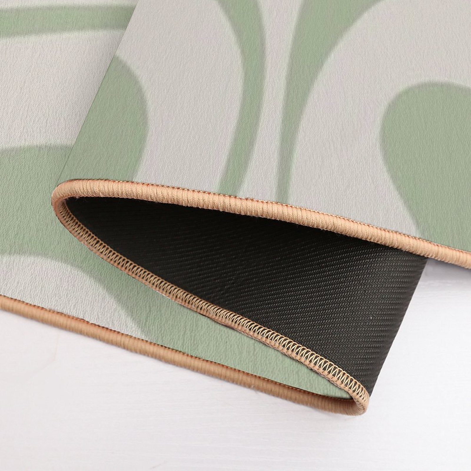 - Non-slip rubber backing grips floors securely, ideal for Liquid Swirl Abstract Pattern in Beige And Sage Green Mat placements on tiles, wood, or marble.