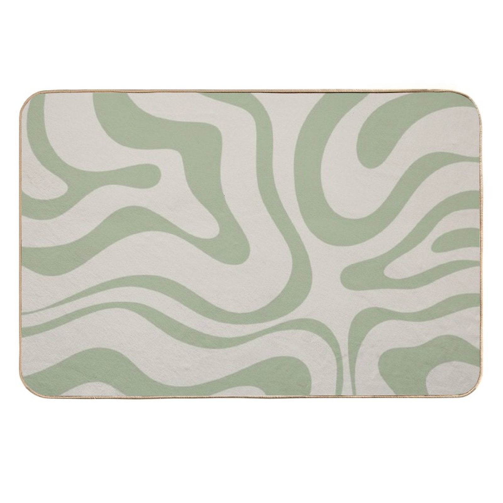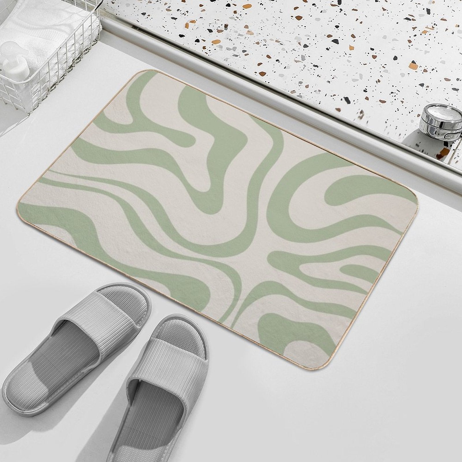 Liquid Swirl Abstract Pattern in Beige And Sage Green Durable Bath Mat