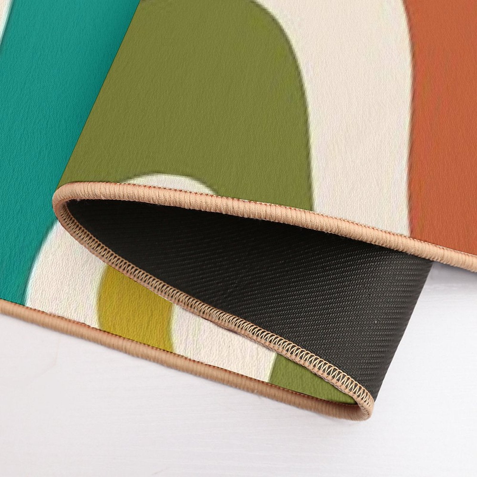 - Non-slip rubber backing grips floors securely, ideal for Liquid Swirl Retro Abstract Pattern in Mid Mod Colours on Cream Mat placements on tiles, wood, or marble.