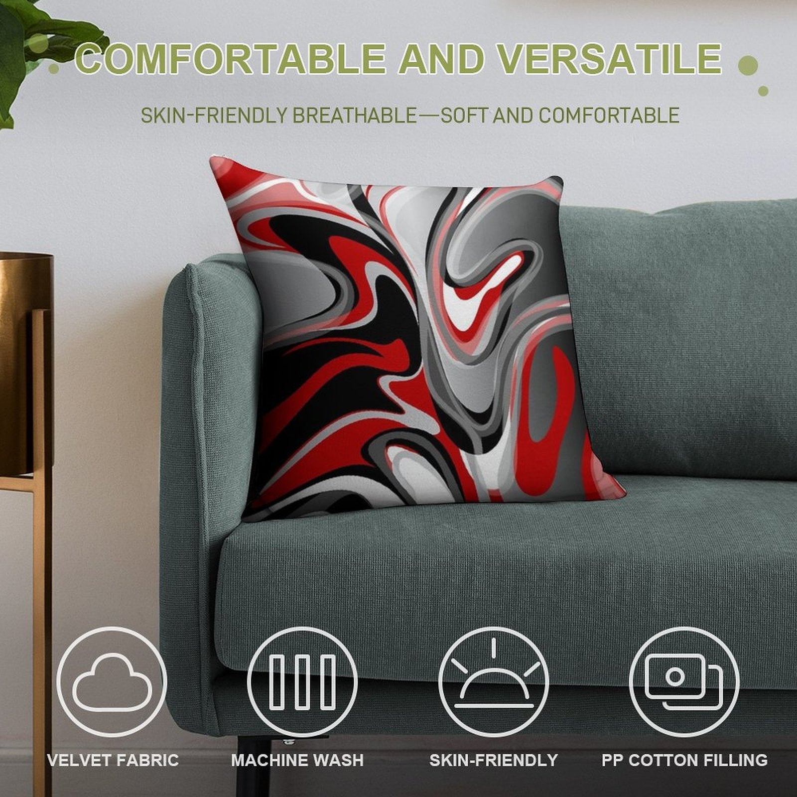 Liquify - Red, Gray, Black, White Soft Hidden Zipper Throw Pillow