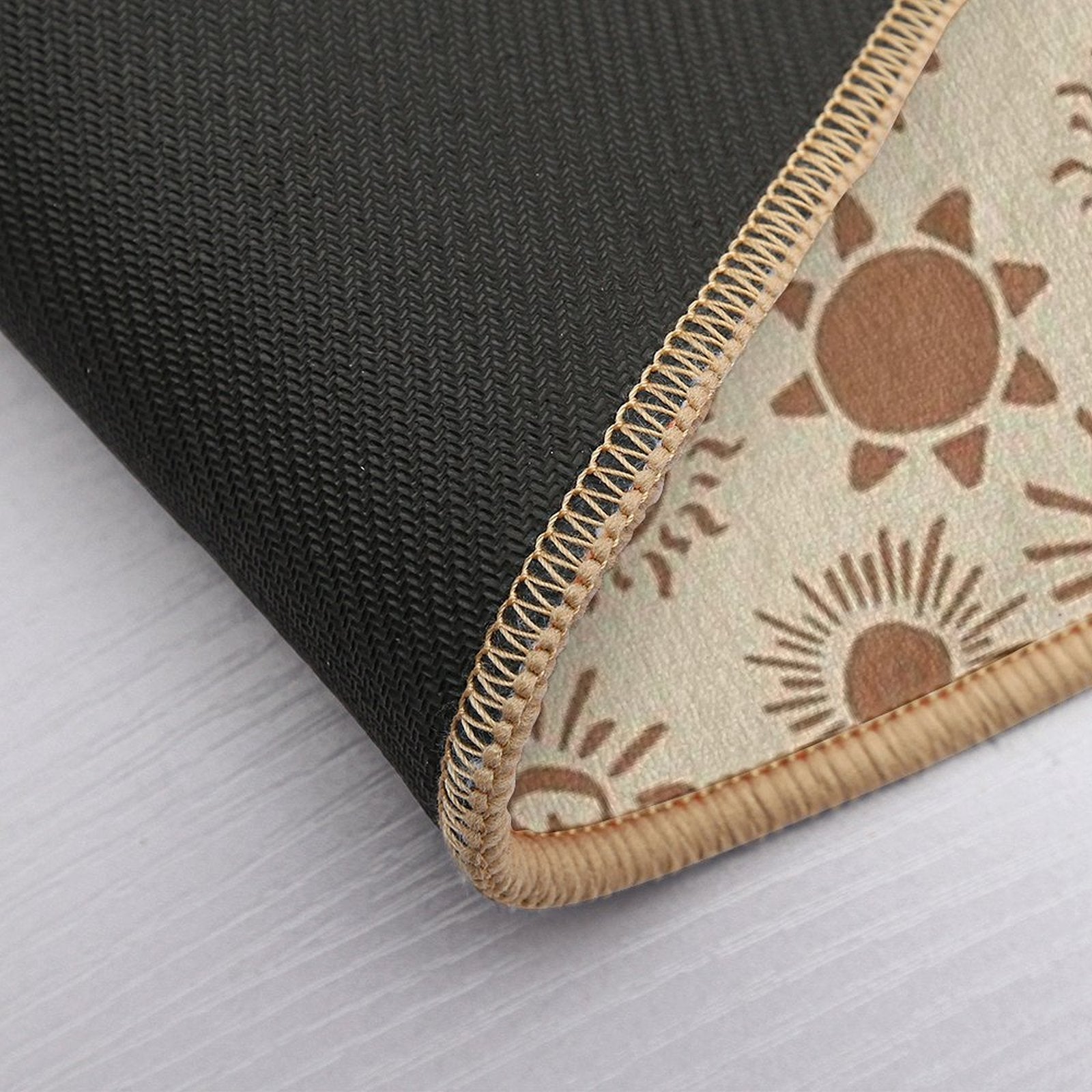 - Non-slip rubber backing grips floors securely, ideal for Magical Sun Bohemian Dreamy Aesthetic In Muted Colors Brown & Muted Yellow Mat placements on tiles, wood, or marble.