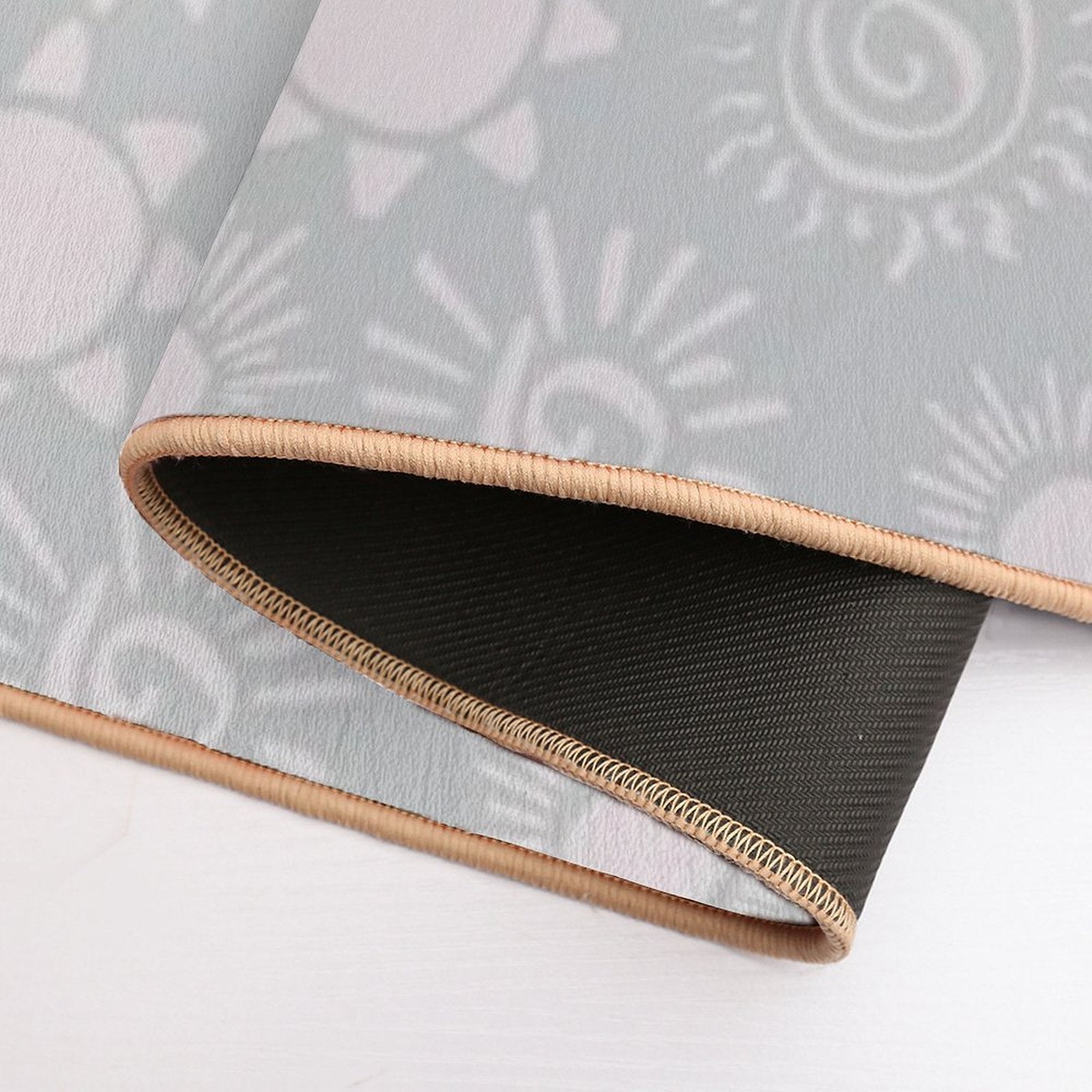 - Non-slip rubber backing grips floors securely, ideal for Magical Sun Bohemian Dreamy Aesthetic In Muted Colors Grayish Blue Mat placements on tiles, wood, or marble.