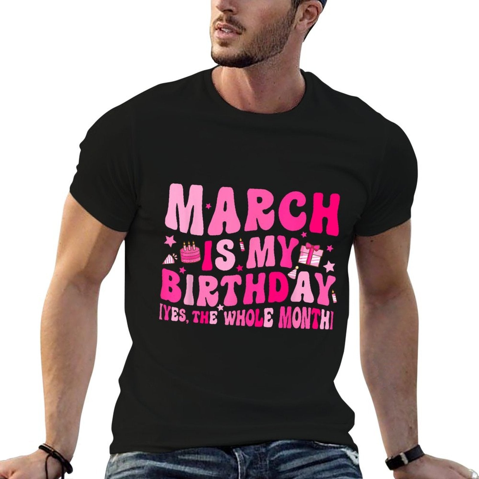 - Avoid bleach to preserve the March Is My Birthday Yes The Whole Month Pink Groovy Bday T-shirt’s bold graphics and cotton integrity.