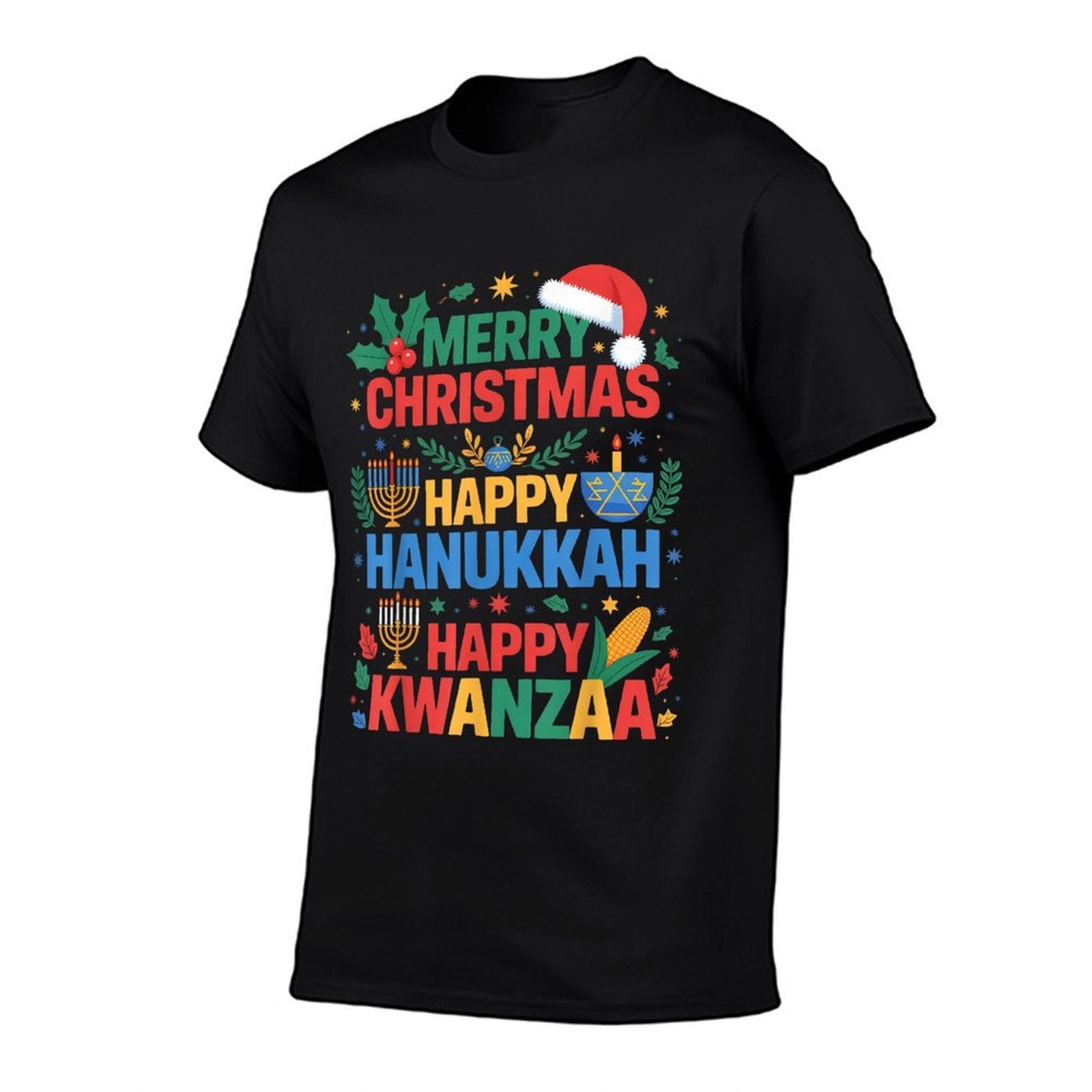 - Heat-transfer prints retain vibrant colors wash after wash, perfect for Merry Christmas Happy Hanukkah And Happy Kwanzaa Holidays casual outfits or statement streetwear.