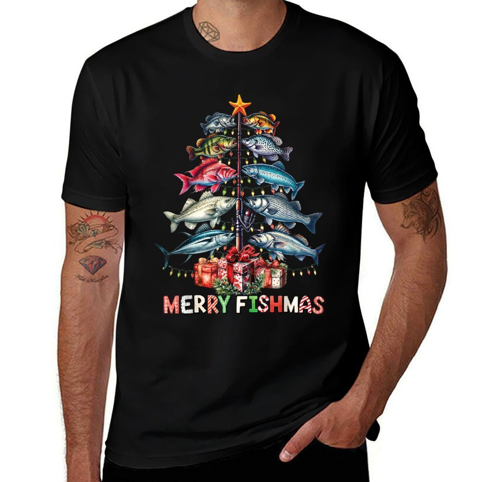 Why Choose Merry Fishmas Funny Christmas Tree Lights Fishing Rod Fish T-Shirt?