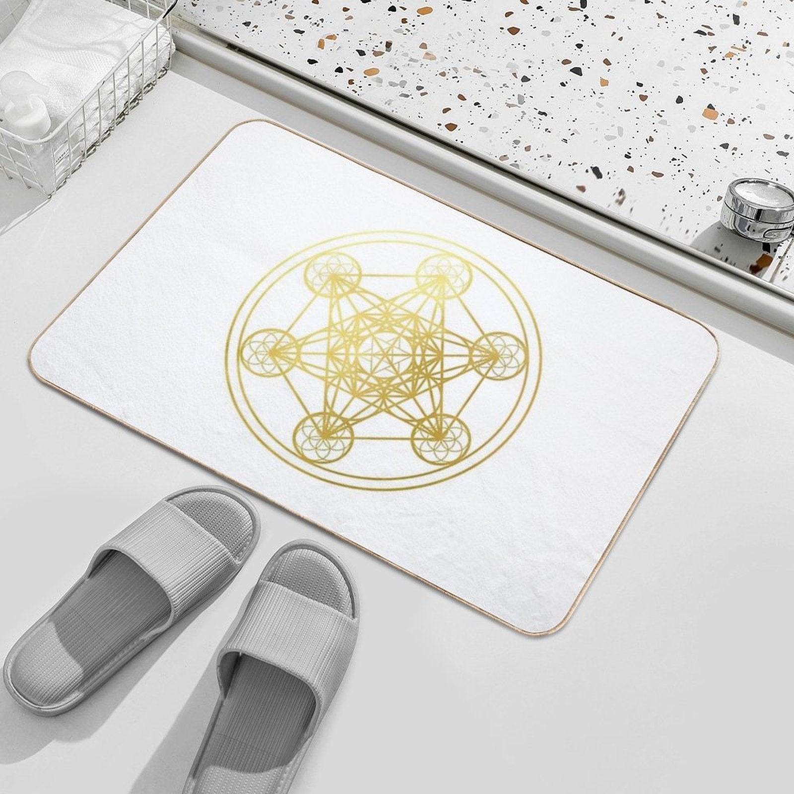 Metatron Cube Sacred Geometry Mandala Healing Protection Amulet Slip-Resistant Bath Mat