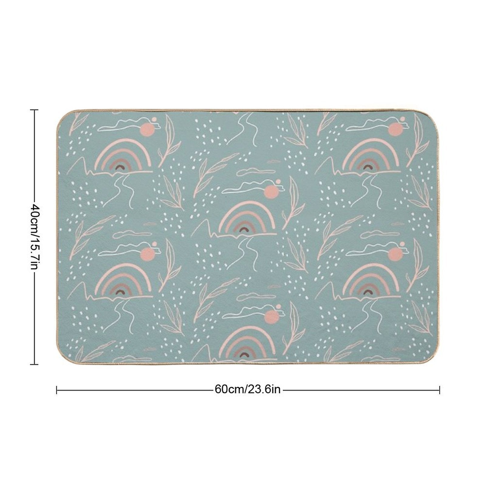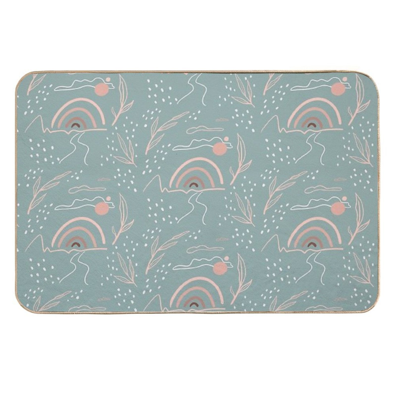 - Non-slip rubber backing grips floors securely, ideal for Minimalistic Design with Rainbow And Leaves Mat placements on tiles, wood, or marble.