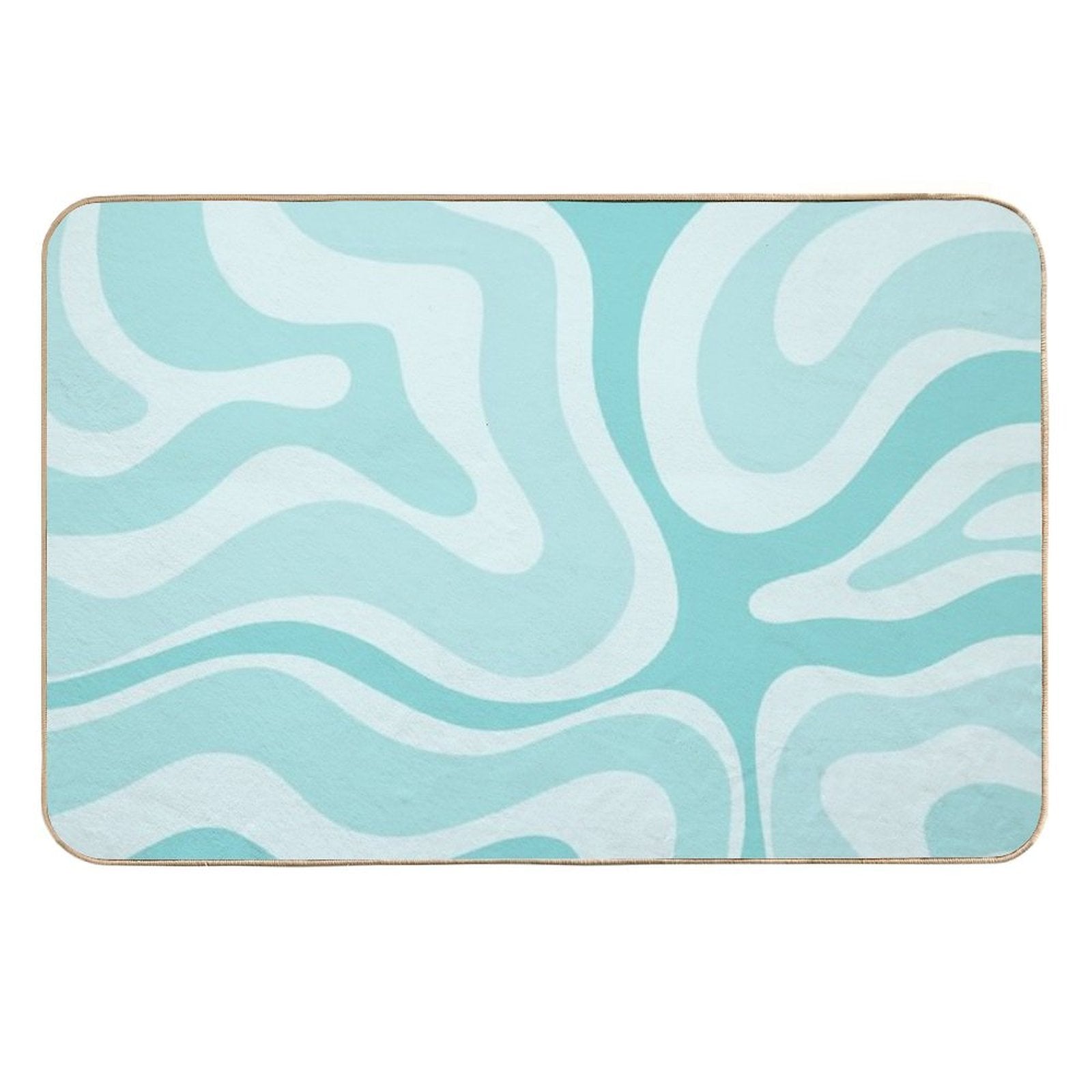 - Non-slip rubber backing grips floors securely, ideal for Modern Retro Liquid Swirl Abstract in Light Aqua Teal Blue Mat placements on tiles, wood, or marble.