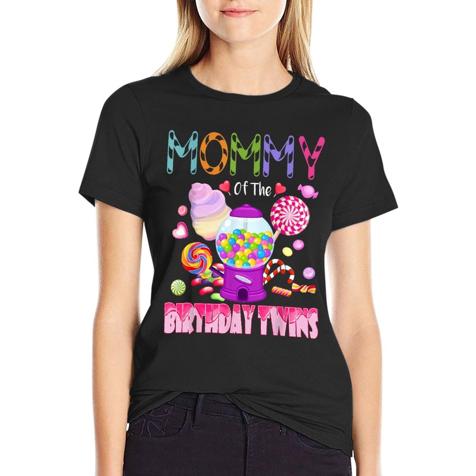 Mommy Of The Birthday Twins Candyland Candy Birthday Party Fade-proof Color T-Shirt