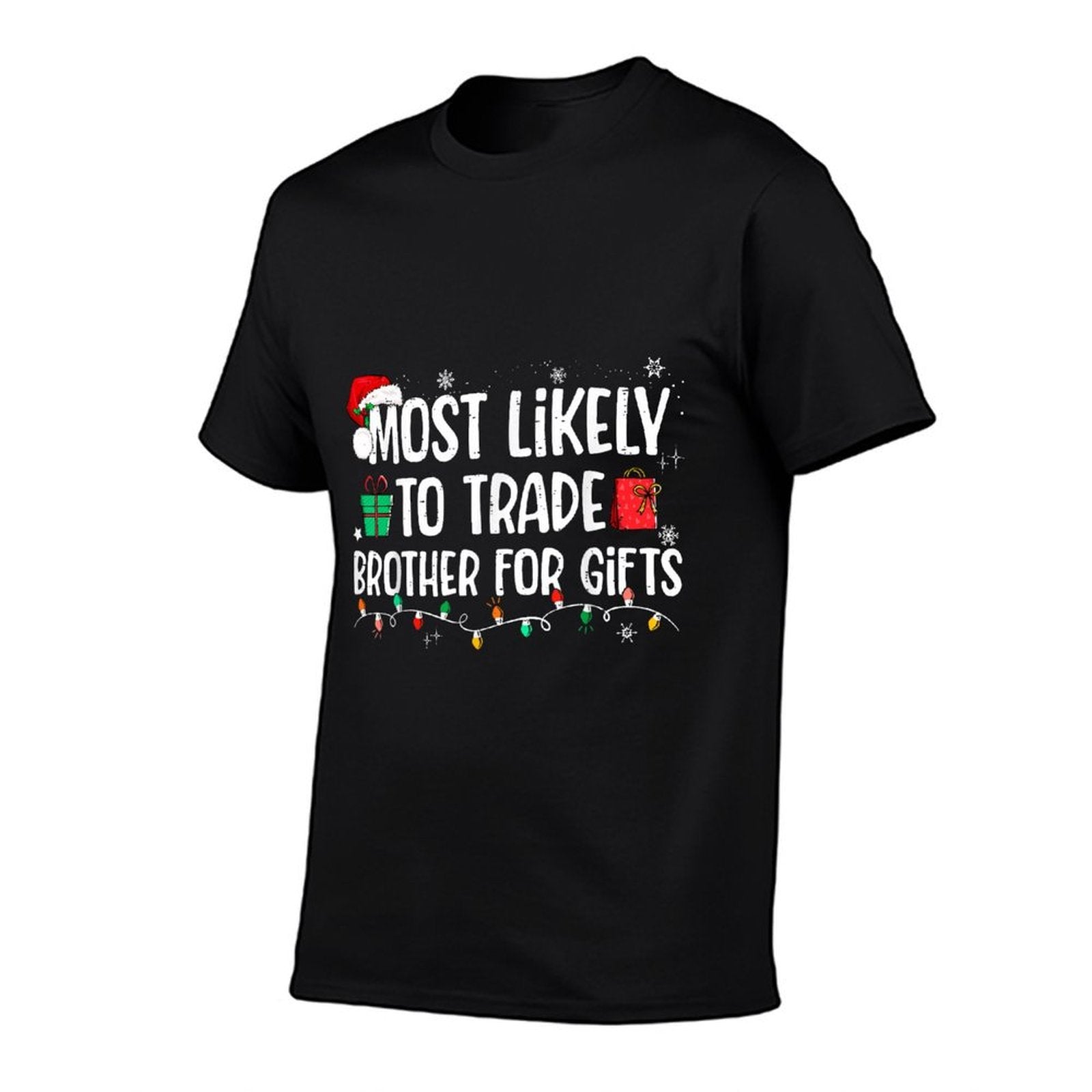 - Avoid bleach to preserve the Most Likely to Trade Brother for Gifts Family Christmas T-shirt’s bold graphics and cotton integrity.