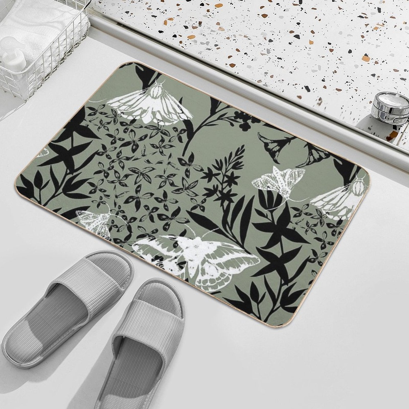 Moths And Flowers Graphic Pattern Odorless Bath Mat