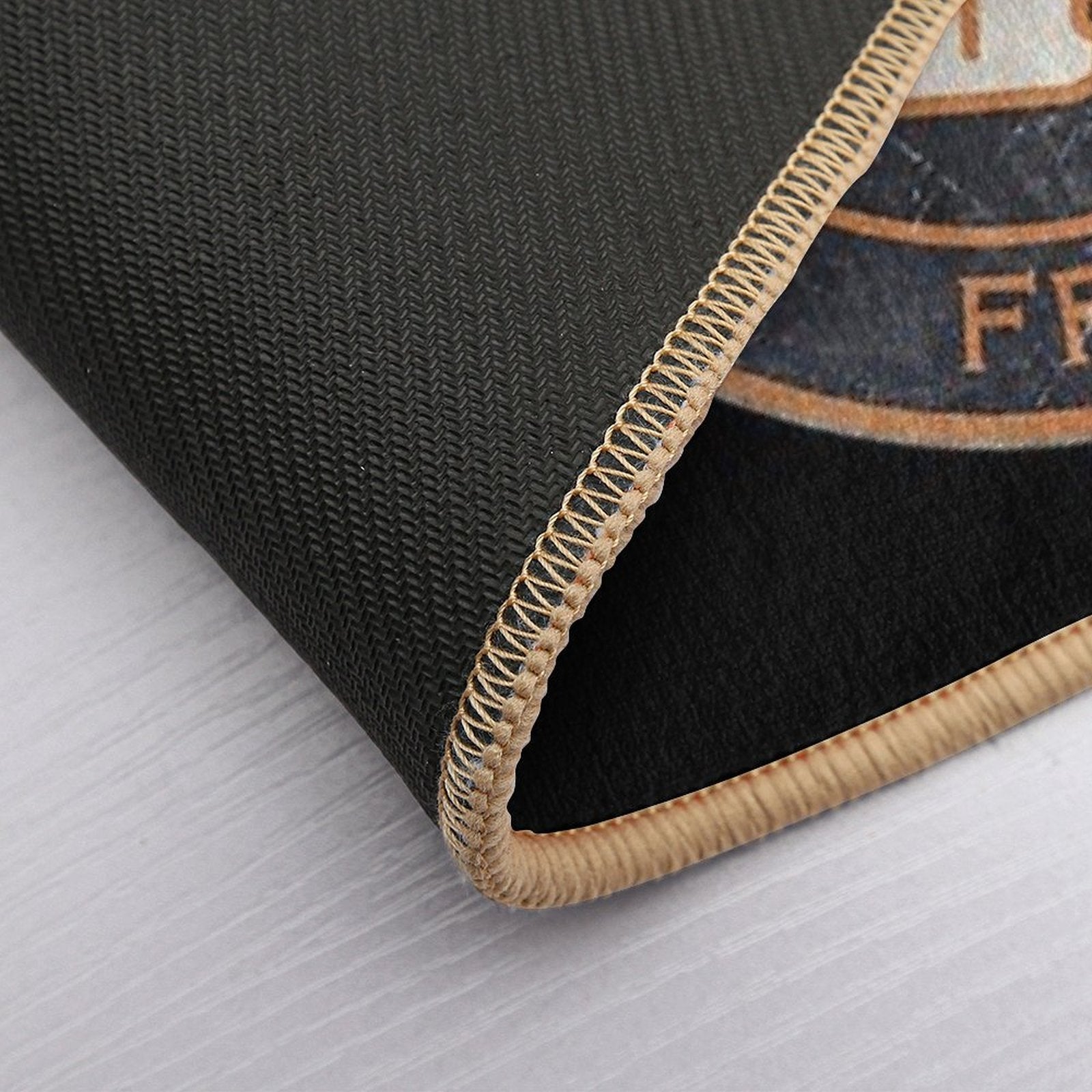 - Non-slip rubber backing grips floors securely, ideal for MOTOBÉCANE . Retro Badge Mat placements on tiles, wood, or marble.