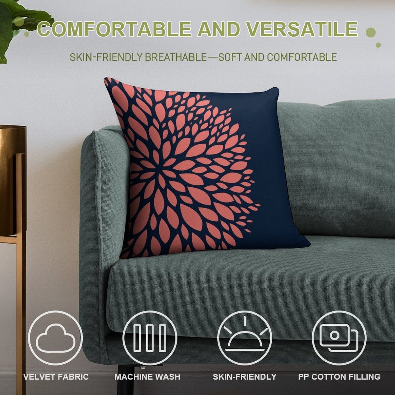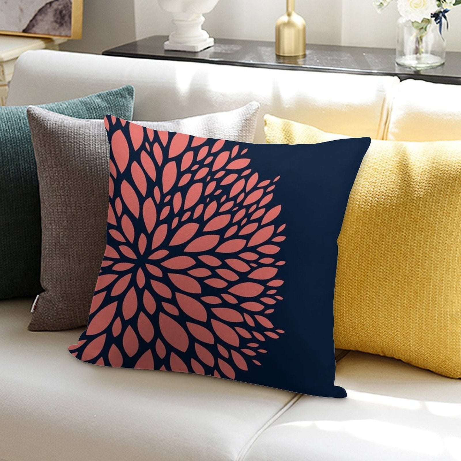 Navy Blue And Coral Flower Design Soft High-Density Material Throw Pillow