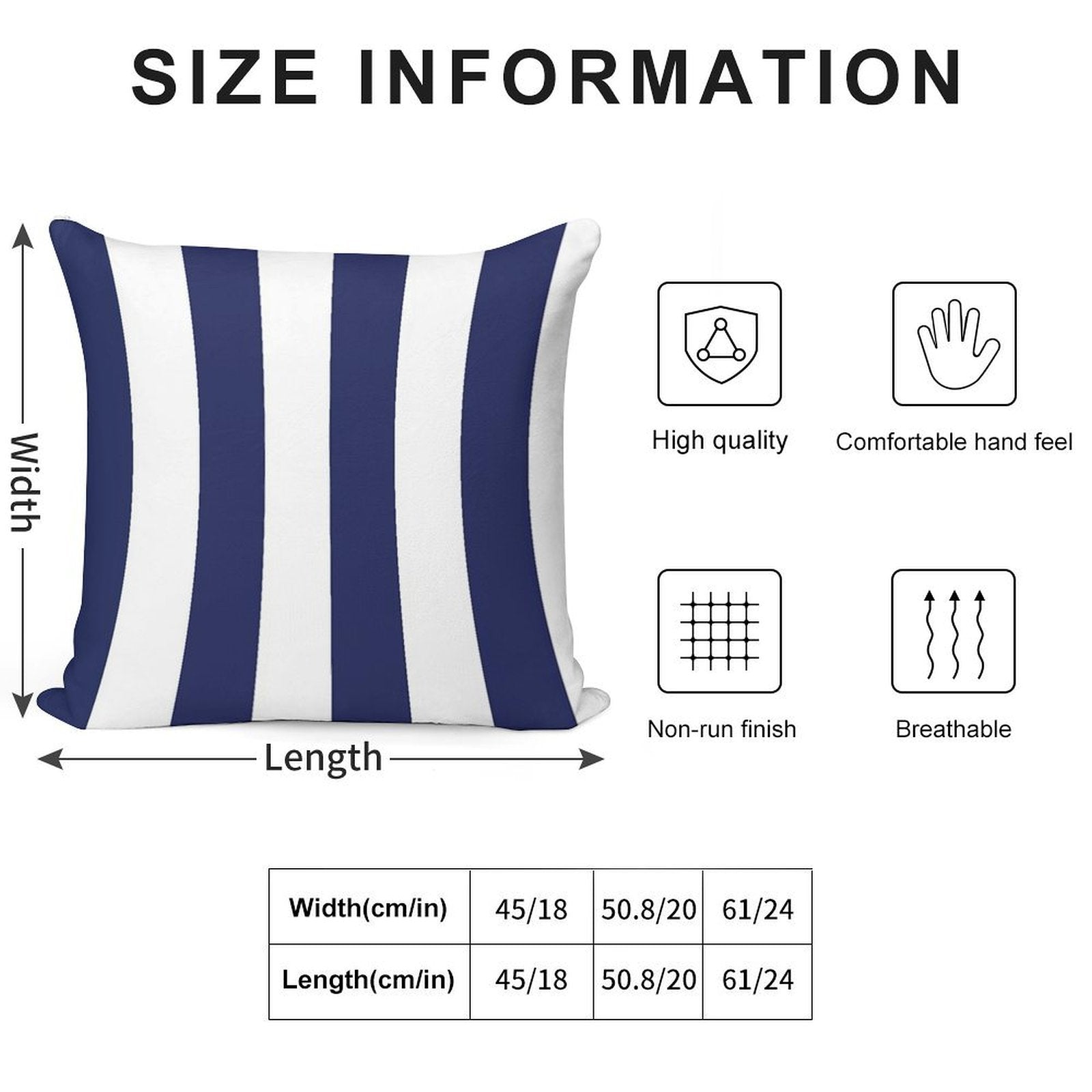 - Reinforced stitching along the edges prevents fraying and extends the life of your Navy Blue And White Stripes, Vertical Awning Stripes Pillowcase.