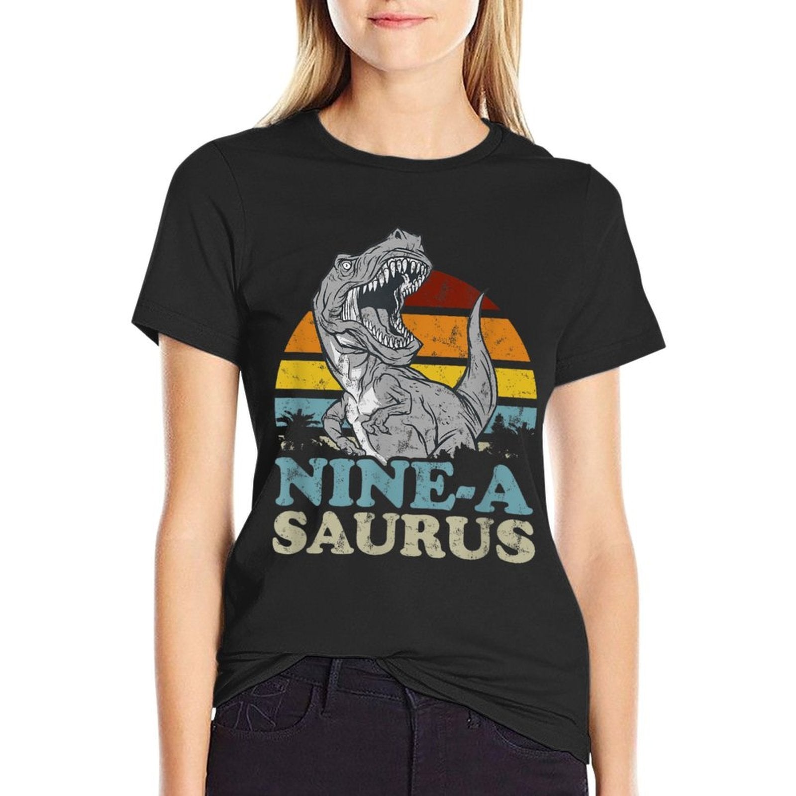- Naturally breathable for Nine-A Saurus Two Rex Birthday 9 Year Old T-Rex summer adventures, from humid hikes to backyard BBQs.