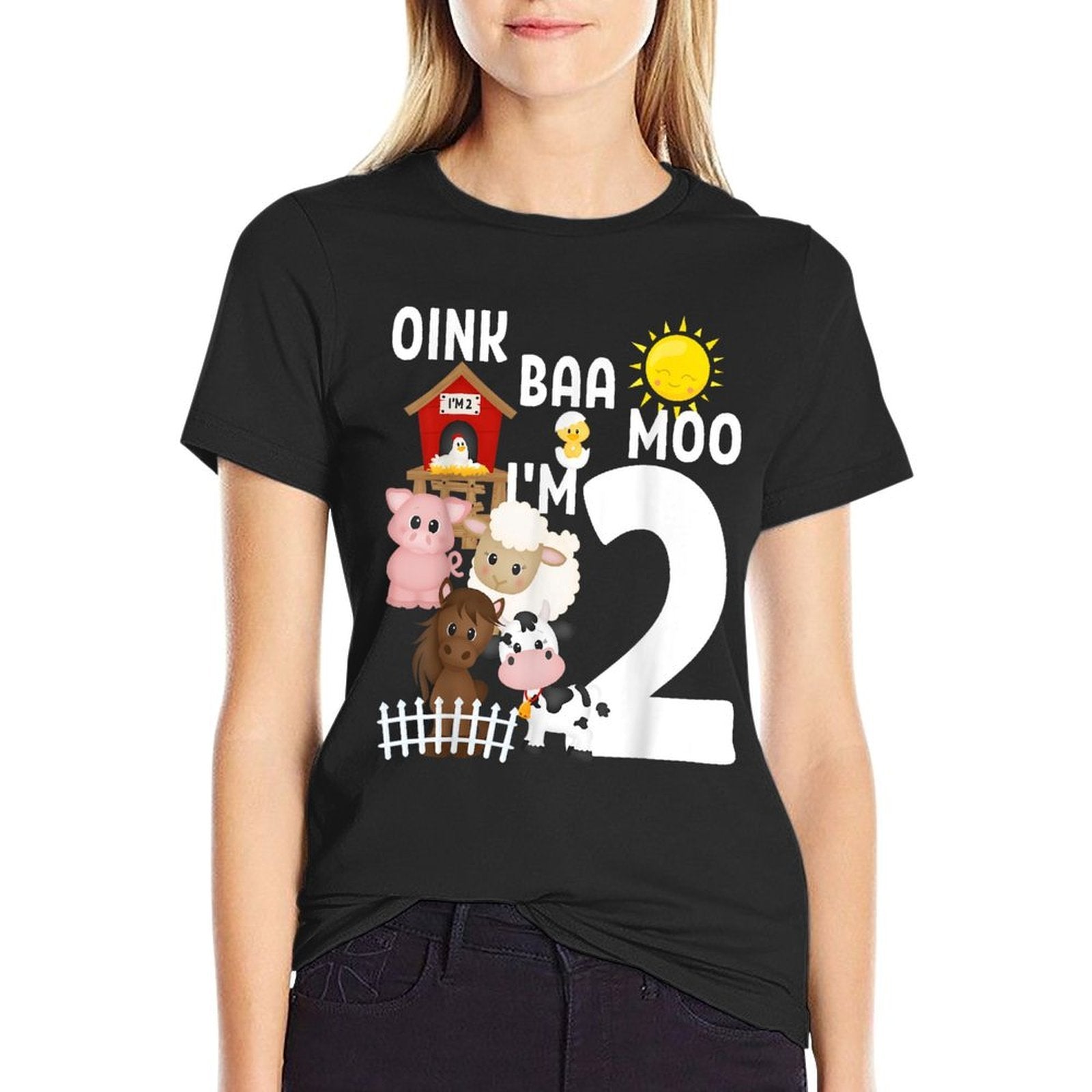 Oink Baa Moo I'm 2 Farm Theme Birthday Gift 2 Yrs Old Summer-ready Fabric T-Shirt