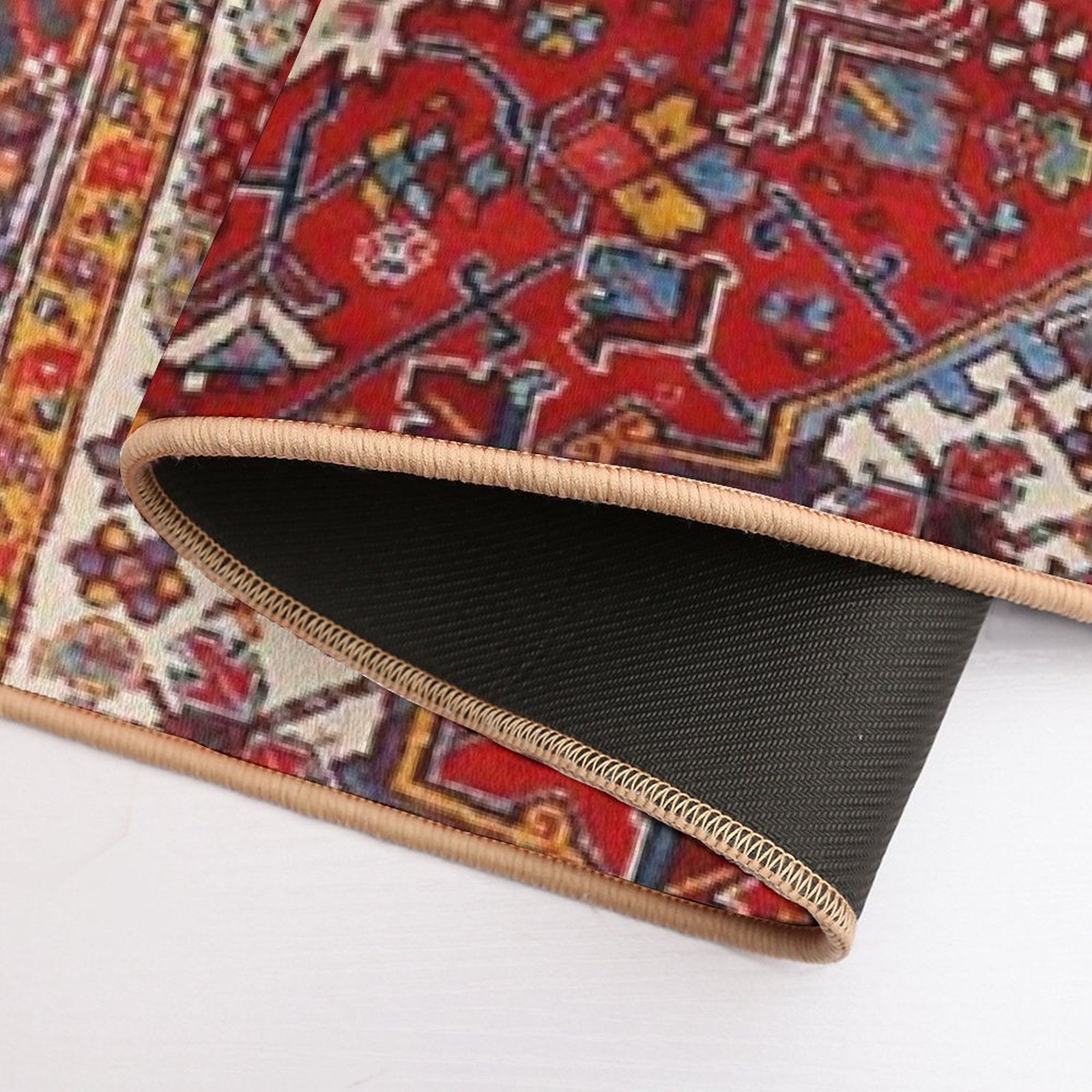 - Non-slip rubber backing grips floors securely, ideal for Persia Heriz 19th Century Authentic Colorful Picture of A Blue Red And Cream Rug Mat placements on tiles, wood, or marble.