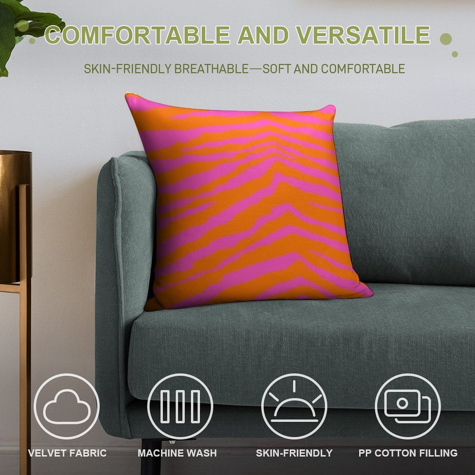Pink And Orange Zebra Print Soft High-Density Material Throw Pillow