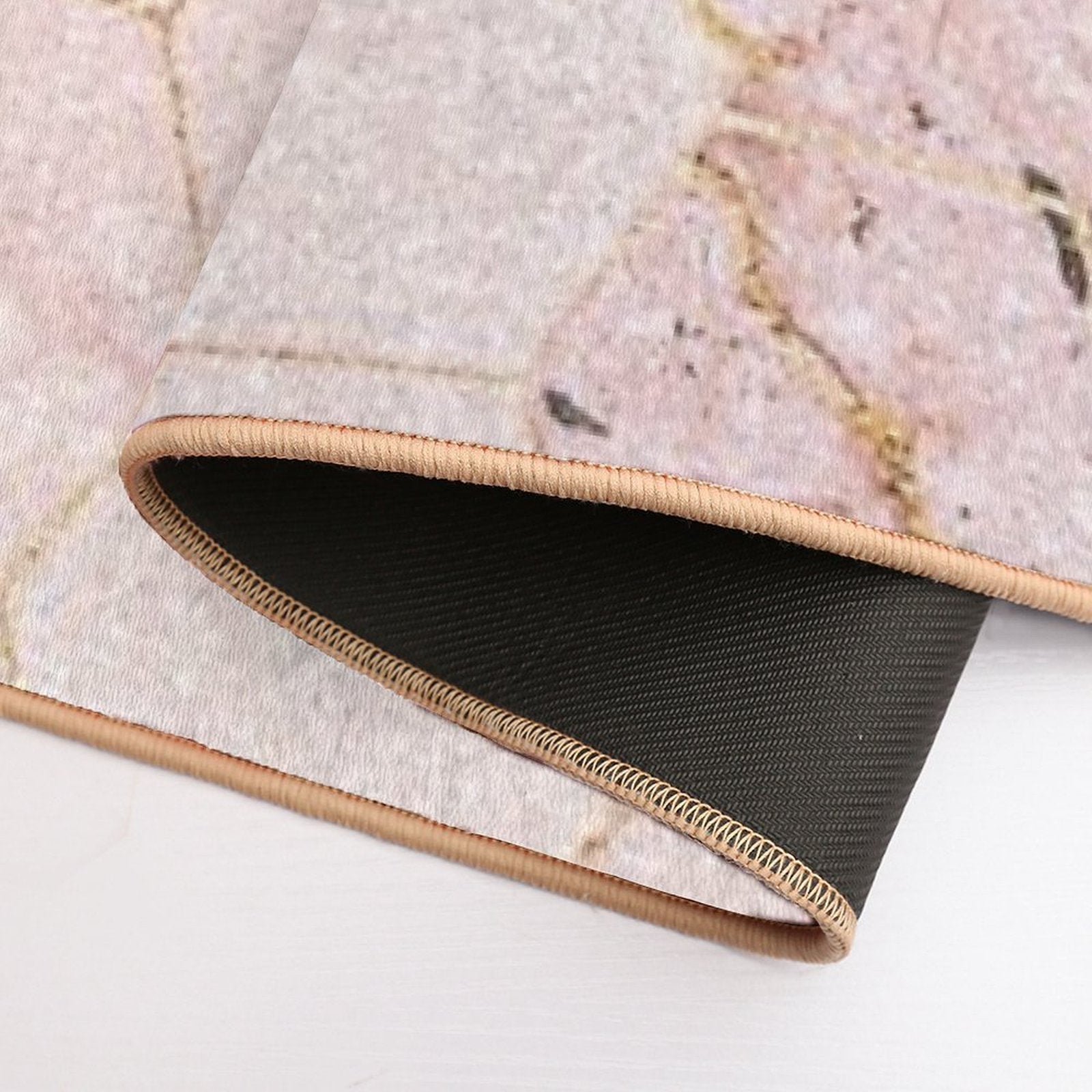 - Non-slip rubber backing grips floors securely, ideal for Pink Sparkling Marble Pattern Mat placements on tiles, wood, or marble.
